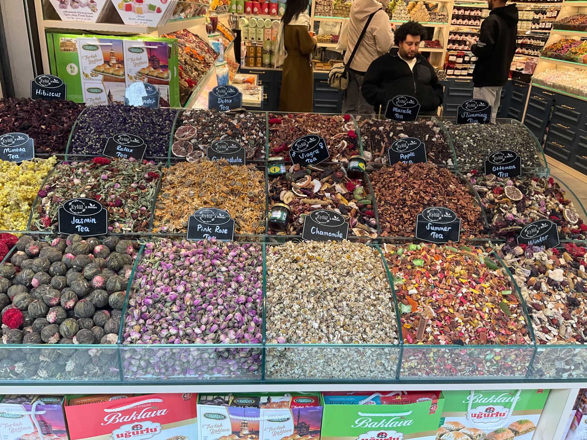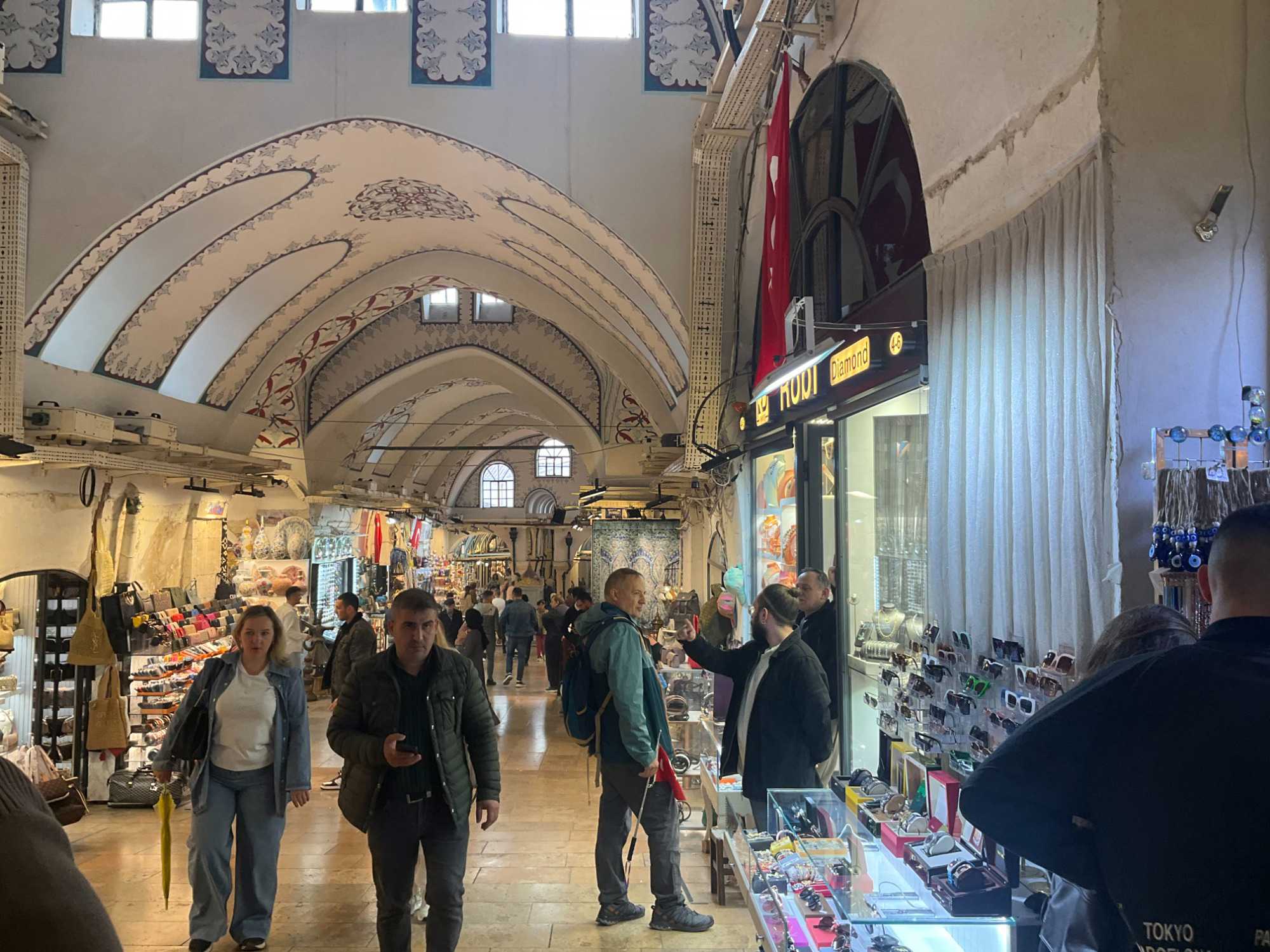 Le Grand Bazar où nous nous rendons juste après, est le deuxième marché couvert d'Istanbul. Ce marché de …4000 boutiques, 65 rues intérieures , avec une une surface totale de 30 700 mètres carrés, est l'un des plus anciens (1660) d'Istanbul et demeure sans contredit, l'un des meilleurs endroits de la ville pour acheter des produits typiques comme les épices, les délices turcs, les sucreries, les noix, des fruits secs et même des bijoux et souvenirs. Depuis ces siècles d’enchères, bien normal que les odeurs se soient imprégnées. Mamma mia! Les étals débordent d’éclats et de teintes saillantes. Ce n’est pas pour rien qu’il est l'une des principales attractions touristiques d'Istanbul et attire entre 250 000 et 400 000 visiteurs par jour.[