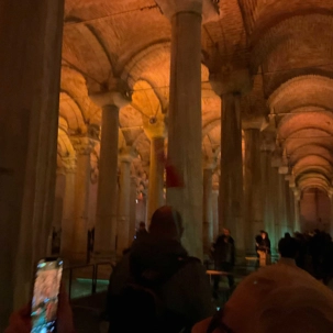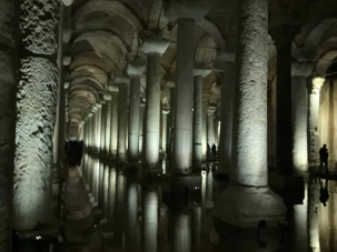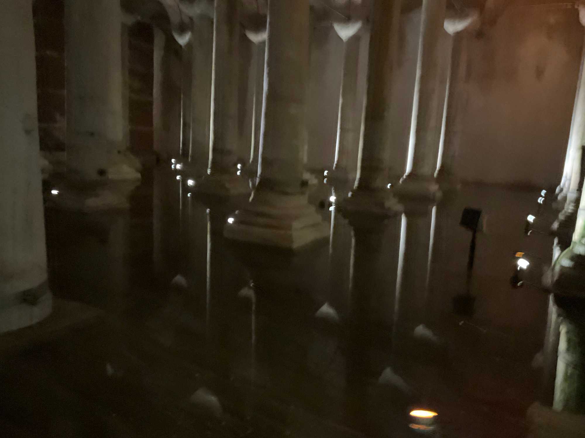 Ensuite, on découvre la Citerne Basilique, située dans le quartier historique de Sultanahmet, qui fut construite sous Constantin au VIe siècle, puis agrandie par l’empereur Justinien dans le sous-sol d'un grand bâtiment à portiques, la Basilique, après l'incendie de celui-ci . Notre guide nous mentionne que cette grande citerne servait autrefois à alimenter en eau le palais impérial. Notre visite s’est effectuée sur des passerelles au-dessus de l’eau. La citerne est l'un des monuments les plus spectaculaires encore visibles aujourd'hui à Istanbul avec ses 336 colonnes et son ambiance feutrée dans les caves.
