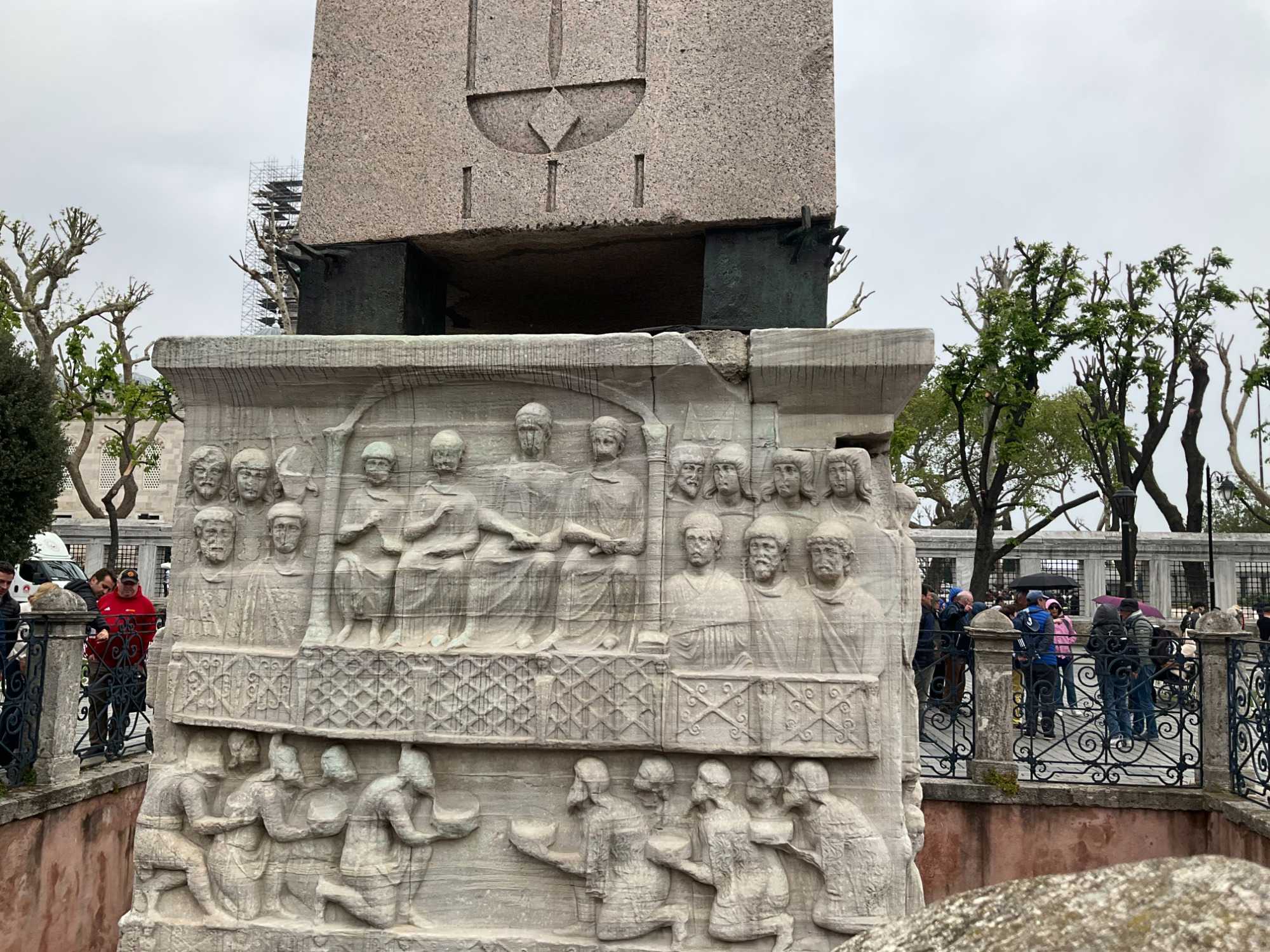 Et si on poursuivait par la découverte d’un grand espace qui fut en fait, l'hippodrome de Constantinople, une arène hippique monumentale de la capitale de l'Empire byzantin. En se remémorant l’époque, il fut facile de s’imaginer les courses de chars et, des activités sportives, politiques et culturelles qui s’y déroulaient durant les périodes romaines. Utilisé jusqu'à la fin du XIIe siècle, incendié en 1204, ne nous reste aujourd'hui, que les vestiges visibles sur la place du Sultan-Ahmet. Le peuple en a maintenant pris possession et s’y retrouve en grand nombre pour échanger et les touristes adorent s’y retrouver.