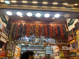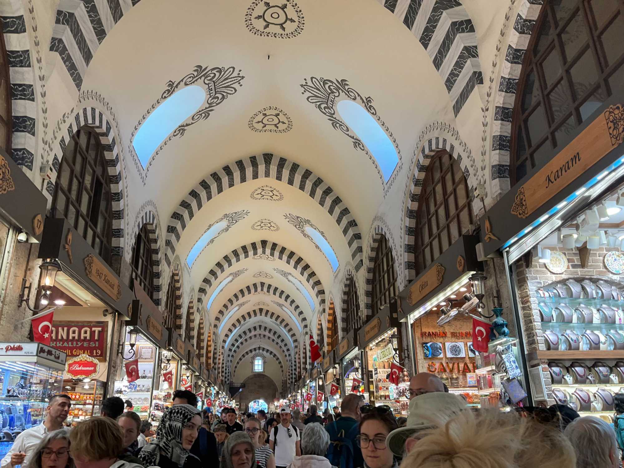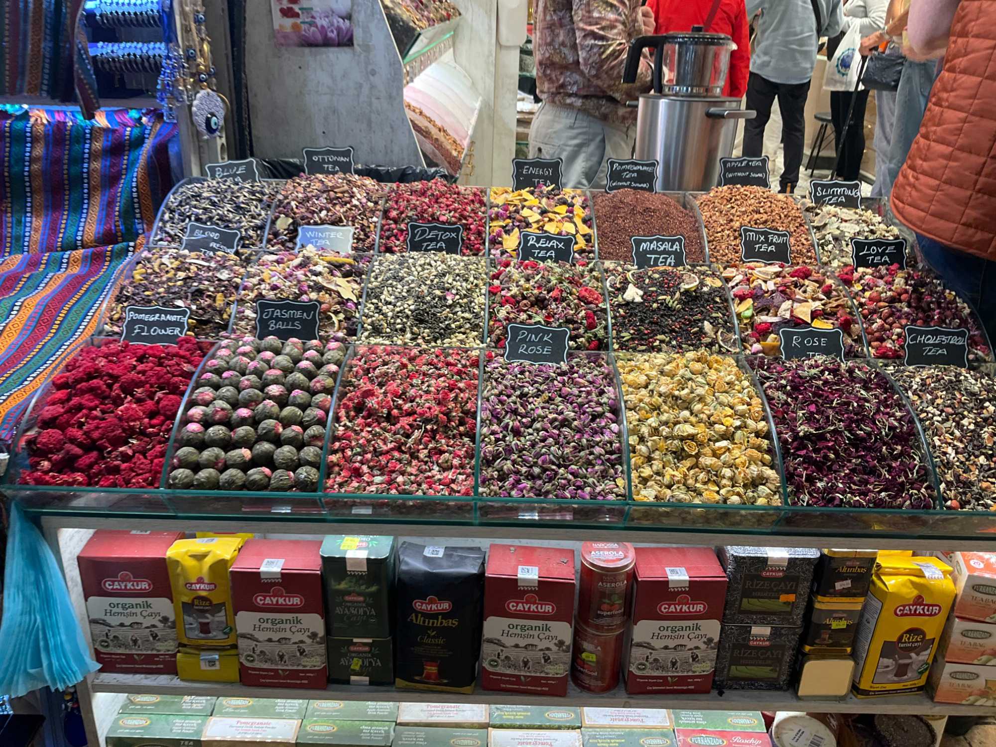 Après ces découvertes empreintes d’archives, nous voici au pays des odeurs, des couleurs, et des saveurs enivrantes : le bazar aux épices, également appelé « bazar égyptien » (Mısır Çarşısı) situé dans le quartier d'Eminönü. D’abord, il faut passer un genre de sous-terrain pour s’y rendre. Comme le Granz bazar hier, la foule est dense et on doit suivre la lenteur de la cadence. Les vendeurs de ces boutiques ont tous notre admiration de travailler ici tous les jours. Ils doivent être très fatigués après leur journée de douze heures. On a participé à une présentation sur les épices et herbes. Le safran si rarissime à nos supermarchés se trouve en grande quantité ici mais, les prix demeurent tout de même élevés. La visite fut brève pour la plupart d’entre-nous plus familiers avec les grands espaces mais on ne peut venir à Istanbul sans arpenter les bazars, histoire de se rappeler la chance que nous avons au Canada.