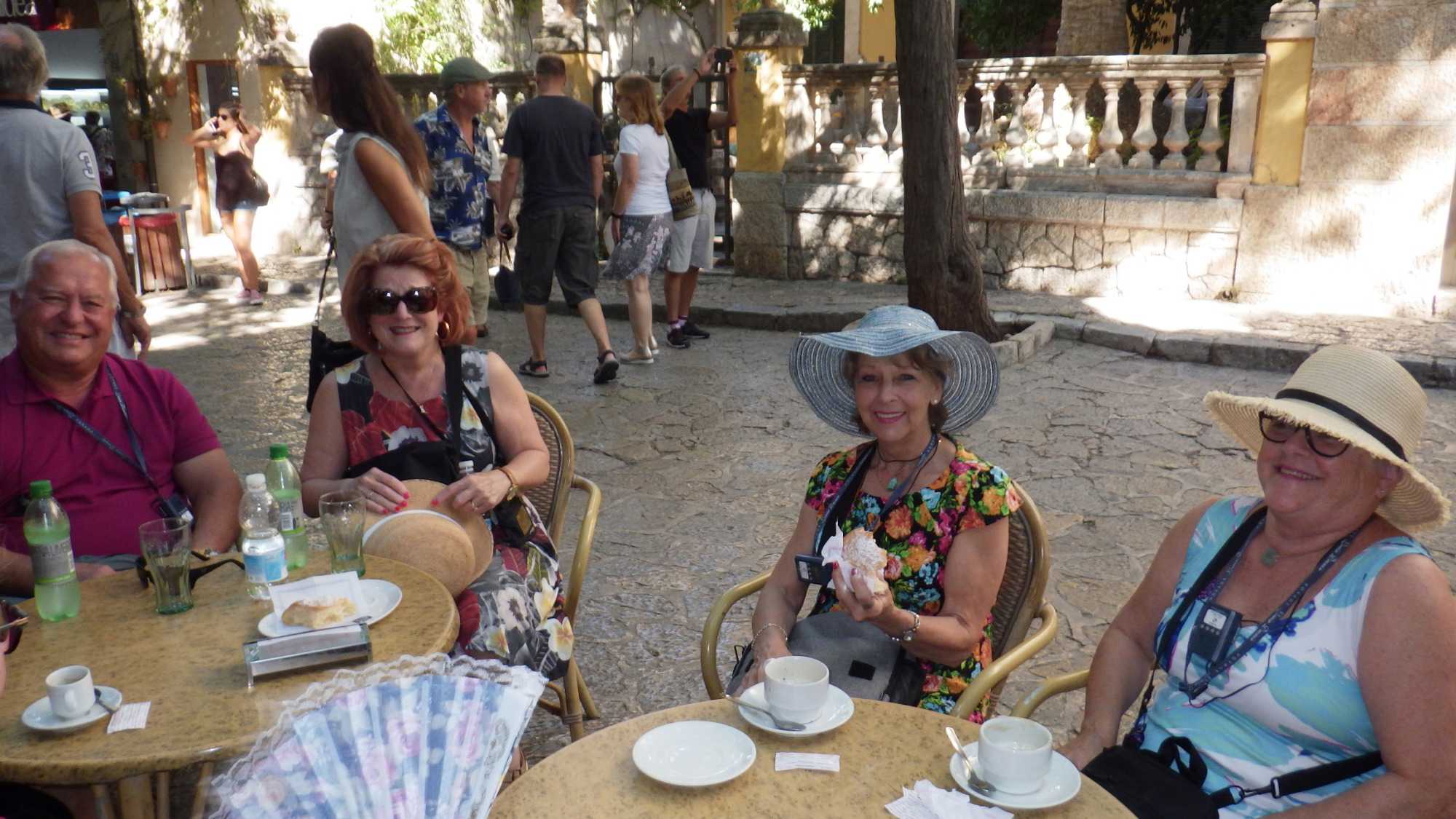 Après un tour guidé du village, chacun a eu un peu de temps libre pour faire des achats et, pour les messieurs, de rester bien assis sur un banc à faire de plus ample connaissance. Certaines dames en profiteront pour se gâter en faisant l’acquisition d’un magnifique collier de perles, boucles d’oreille ou d’un beau bracelet produit ici à Majorque.