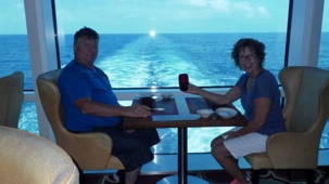 Le bureau est très bien positionné, au 3ieme étage, près du Guest Relations. Lorsque nous sommes en mer, j’en profite pour faire plusieurs heures de bureau par jour. C’est très agréable de voir passer tant de gens toute la journée. Nous rencontrons d’autres gens du Québec, présentement nous sommes 200 du Québec, Wow ! Ça fait une très belle publicité pour VLD. Plusieurs demandent des informations sur nos futurs voyages.