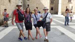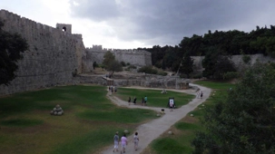 Pendant notre tour panoramique, Babas nous explique que les Remparts font 4 kilomètres de long. 5 000 personnes habitent dans la ville médiévale et on retrouve en totalité 120 000 habitants sur l'île. Les remparts ont été construits par les Hospitaliers de l'ordre de St-Jean de Jérusalem, arrivés en 1506, ils construisent la ville médiévale.