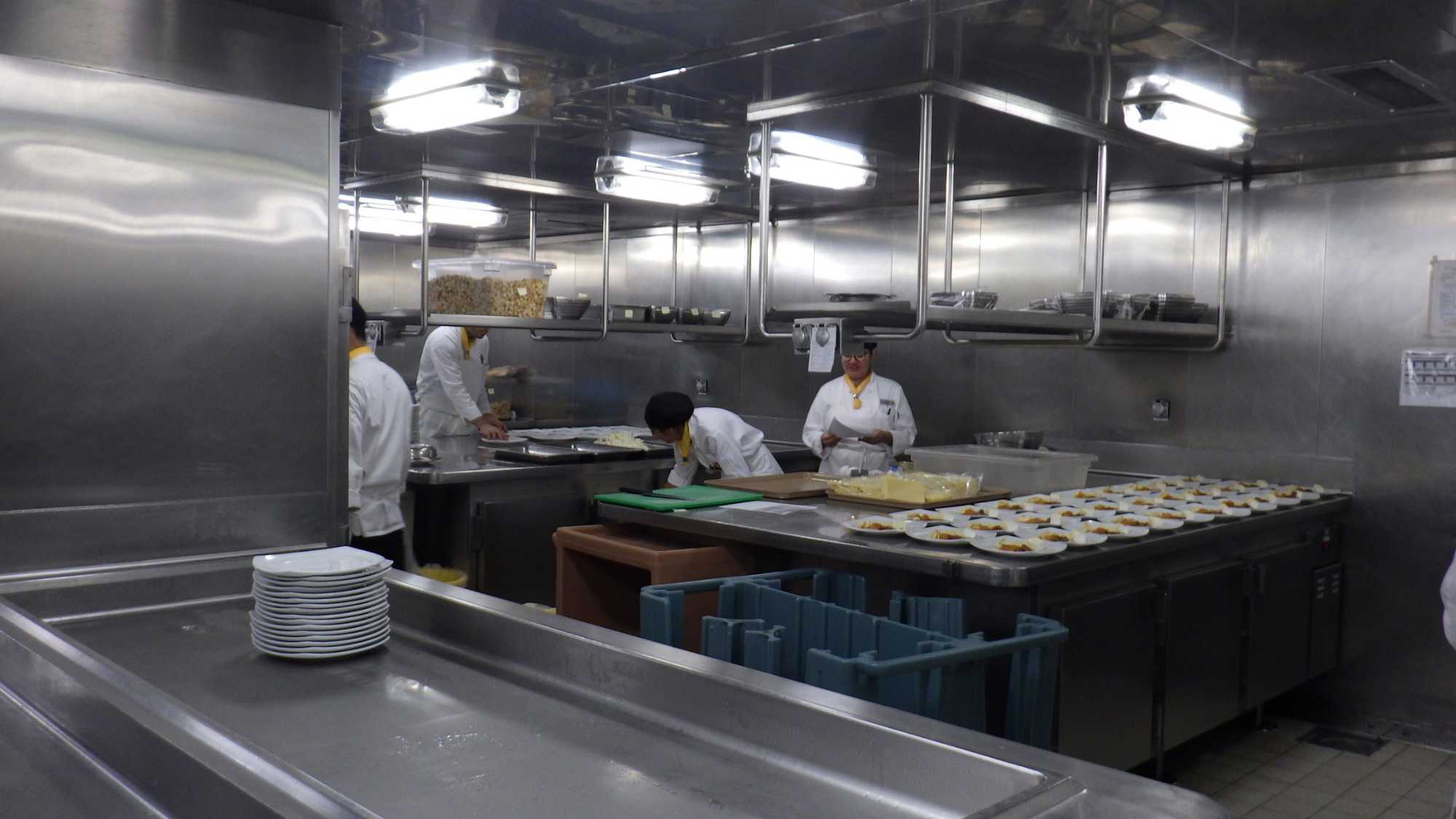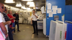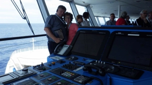Quel beau tour, c’est vraiment à ne pas manquer! Nous passons par le cuisine, la buanderie, la salle des machines, les entrepôts, les quartiers des employés et pour finir la timonerie, c’est la que le capitaine opère ce gigantesque navire.