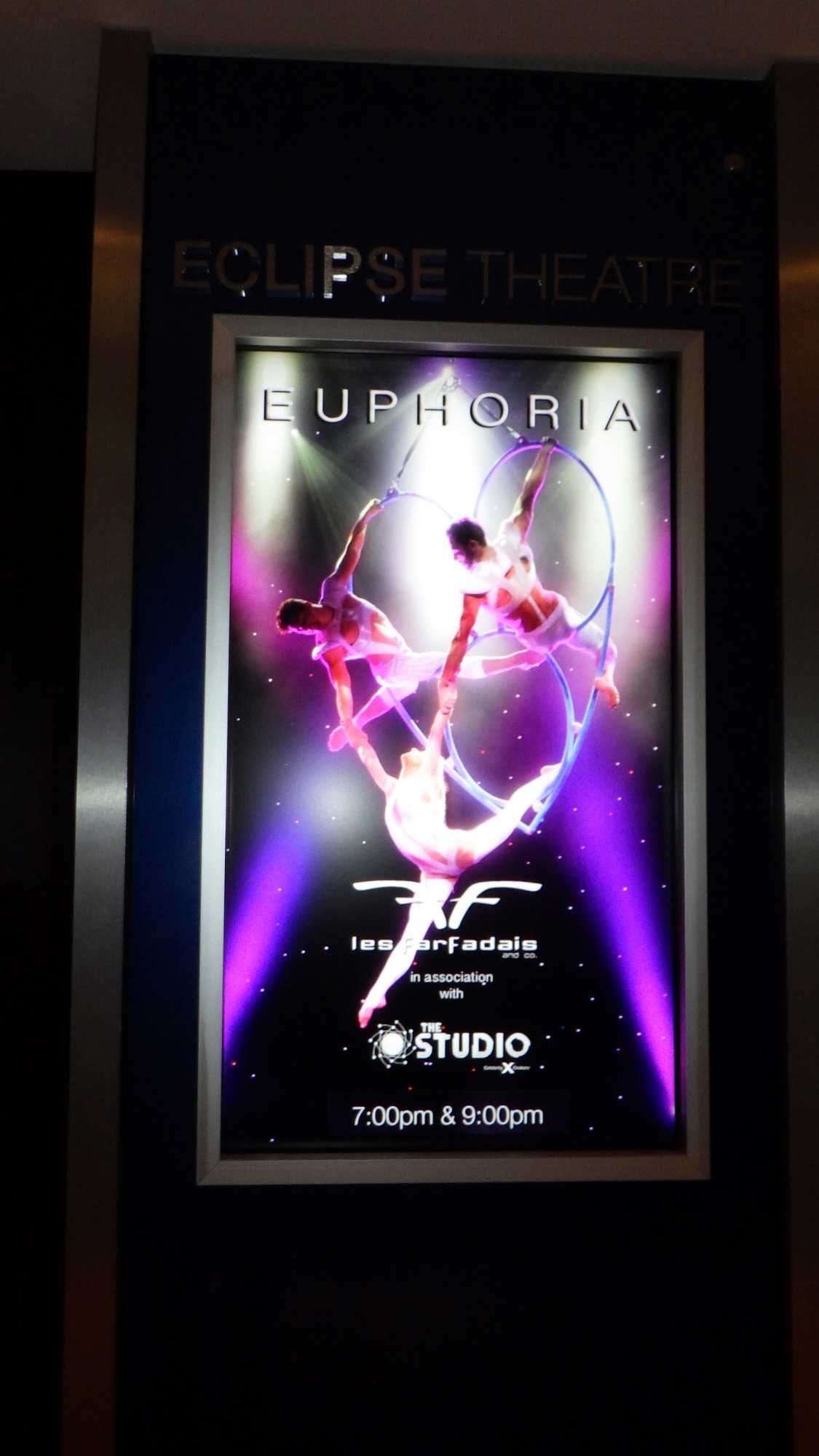 Dans les choses à faire aujourd’hui : casino, piscine intérieure extérieure chauffée, Bingo, rencontre avec le capitaine, tournoi de machine à sous, musique, danse et karaoké étaient au programme. Aussi Mini-putt, Pétanque, Poker, cours de Ballroom, verre soufflé et enfin encore un spectacle au théâtre en après-midi.