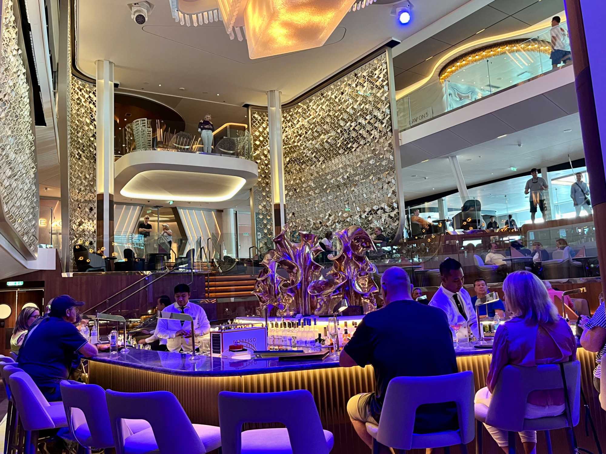 Tout le monde profite pleinement de son premier après-midi sur le Beyond : on prend un premier cocktail, on explore l’étendu du navire et toutes ses commodités spectaculaires : les piscines, le théâtre, le spa, les galeries d’art, le casino, les bars et restos, la salle de sport… On est enchanté et remplis de gratitude d’être ici ! En fin d’après-midi, on se retrouve pour un 5 à 7 à l’Eden. C’est un bar impressionnant, décoré de verdure, avec une vue panoramique sur l’océan et pour compléter l’ambiance, nous avons une chanteuse sur place accompagnée de sa guitare. On discute, on rit, on prend un verre et on célèbre notre première soirée en mer.
