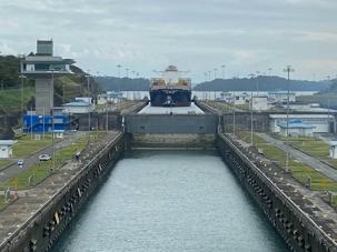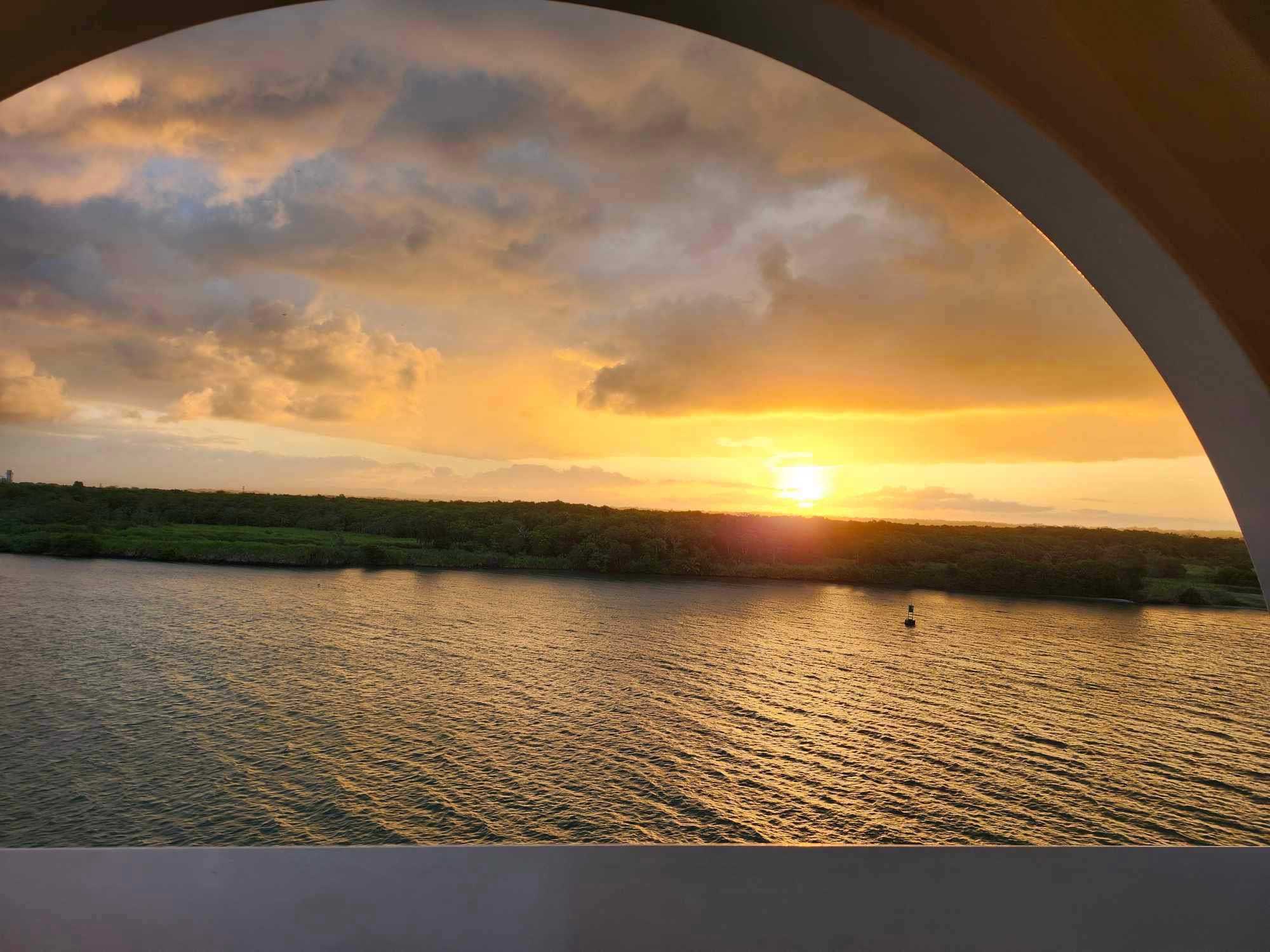 C’est devant un magnifique levée de soleil, que le Beyond fait son entrée dans la première écluse du célèbre canal de Panama. À 6h45, au micro du navire, le Dr. Gary Kramer débute la narration de l’histoire et du fonctionnement du canal de Panama. Les lèves-tôt du groupe prennent avantage de cette conférence unique pour écouter le Dr. Kramer en direct de la télévision de la chambre ou sur la radio des nombreux ponts du navire. Le tout, en sirotant un excellent cappuccino du Café al Bacio!