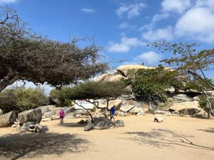 Nous poursuivons notre route en cheminant dans les rues étroites de l’île. Nous gravissons le point haut d’Aruba, auparavant était utilisé comme point d’observation par les indigènes pour voir la venue d’une potentielle attaque de pirates. Nous arrêtons au Casibari Rock où nous pouvons, en escaladant quelques marches, y avoir une vue panoramique de l’île. La terre est sèche, il y a des cactus à profusion, de petits arbustes et ce magnifique arbre typique d’Aruba, le Divi-Divi. Nous y restons le temps de prendre quelques photos.