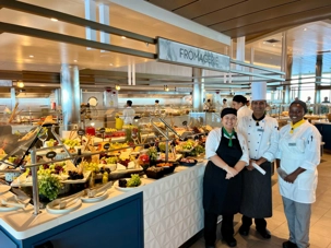 Puis, voilà venu notre dernier souper à bord du navire. Tous les employés affectés au service et ceux qui travaillent dans l’ombre comme les chefs cuisiniers, les aide-cuisiniers, les plongeurs et les pâtissiers ont contribué aux plaisirs gastronomiques que nous avons savourés. Un grand merci à vous tous !