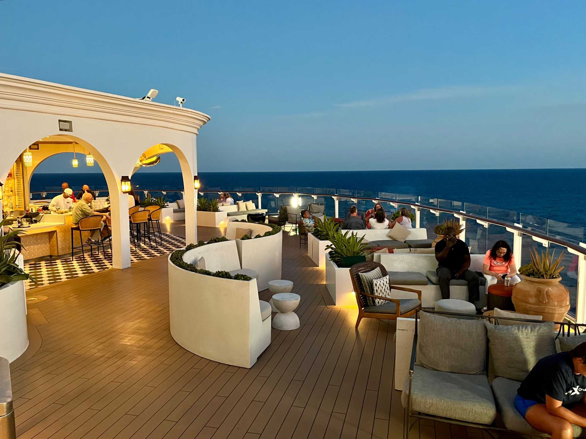 À 5h30 c’est l’heure de l’apéro ! Nous nous retrouvons au Eden Bar pour l’occasion. Nous prenons plaisir à échanger entre nous et à nous remémorer nos beaux voyages. Nous sommes en train de vivre une belle croisière et déjà on pense au prochain voyage à faire. Il y a tellement d’endroits à découvrir. Nous sommes chanceux de pouvoir compter sur la superbe équipe de l’agence Voyage Louise Drouin pour organiser un si beau voyage. Certains voyageurs on même choisit leur prochaine destination.
