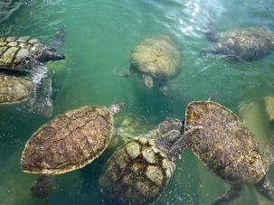 Notre visite se poursuit au centre des tortues. Wow! Qu’elles sont énormes! C’est la première fois que nous en voyons de si grosses. On les admirent dans l’étang principal, puis on fait le tour de la propriété qui est magnifique. Nous avons l’opportunité de toucher à de petites tortues, sur leurs écailles. Elles ne sont pas méchantes du tout! La pouponnière présentait un beau film sur la vie et surtout la naissance de ces tortues vertes. Vraiment une belle visite.