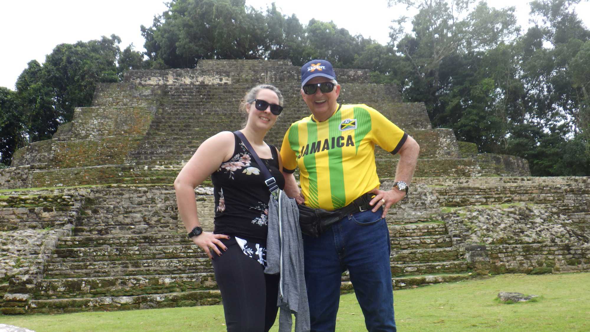 Après ce bon diner, nous sommes montés à bord de notre bateau fluvial pour une croisière rapide le long du lagon de New River. Le point culminant de notre voyage était une visite des ruines mayas de Lamanai, occupées dès 1500 av. J.-C. Nous avons plongé avec curiosité et plaisir dans l’histoire et la culture mayas et avons même grimpé au sommet de l’un des plus hauts temples de cérémonie de Méso-Amérique.