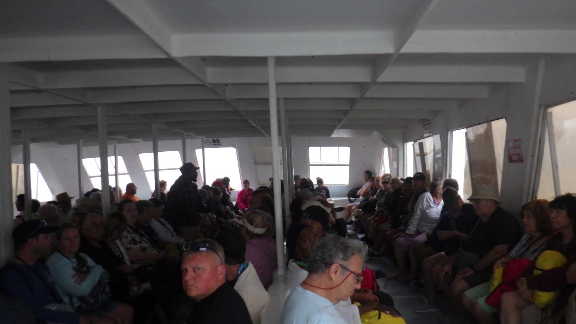 Nous avons eu vraiment une belle visite, finalement le retard du matin nous a bien servi, coté température, merci capitaine! Finalement, nous avons toujours été au sec, un peu de pluie durant le transport en bus et c’est tout. À notre retour, l’équipe de capitaine nous attendait et le dernier bateau-navette était préparé pour nous ramener à bord, nous étions vraiment les derniers voyageurs à revenir. Tout le monde va bien, la vie est belle et la croisière s’amuse beaucoup!