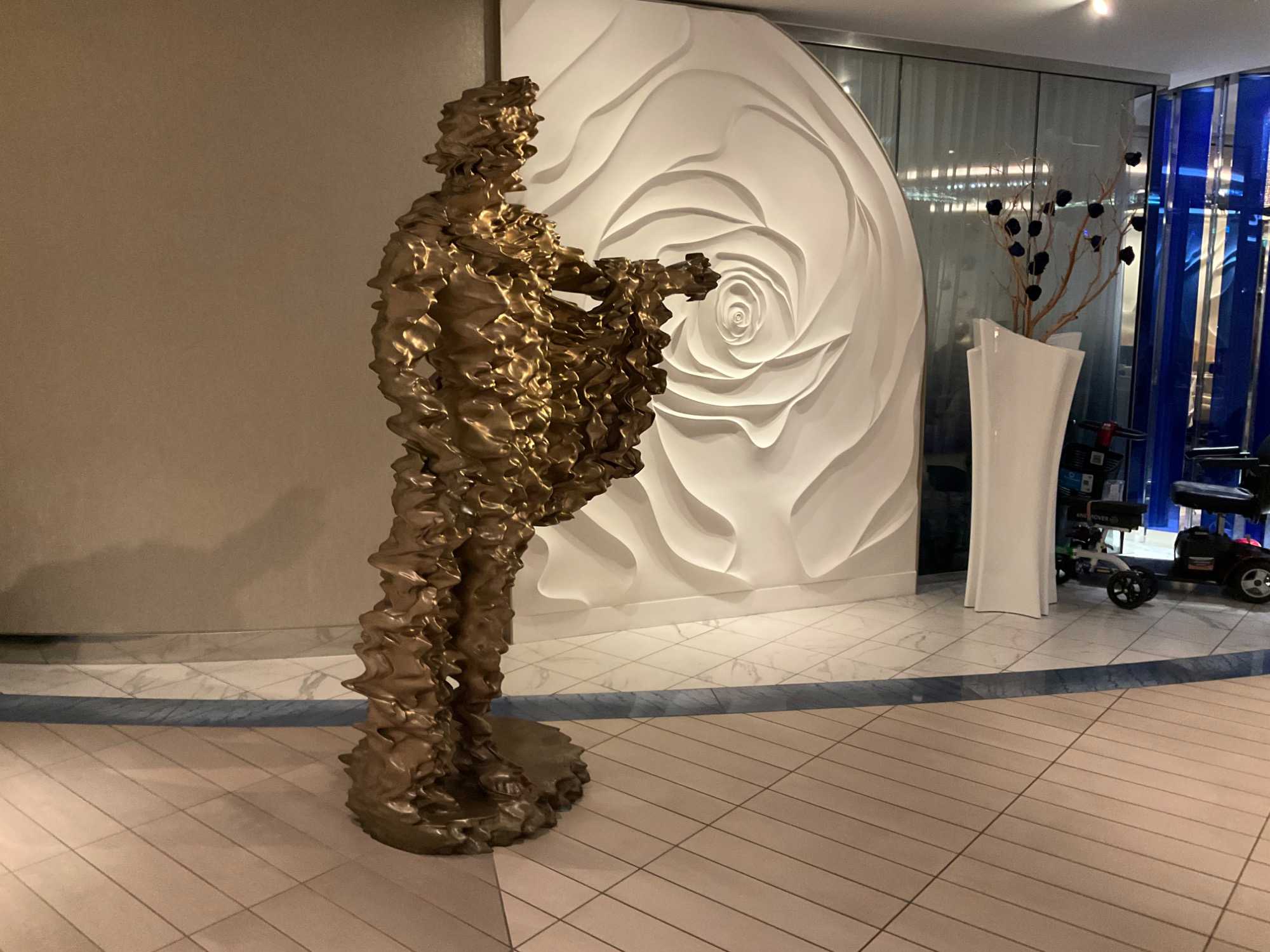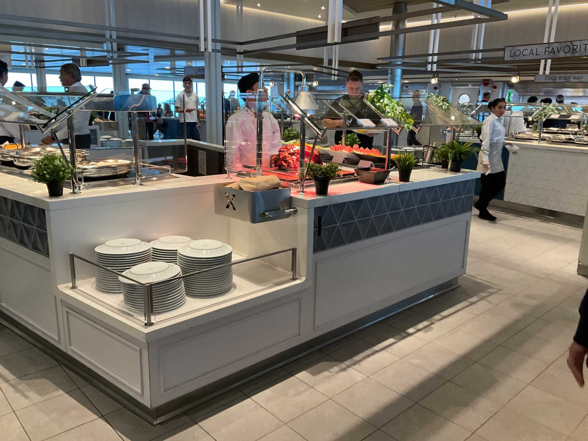 La mise en service de ce magnifique navire de Celebrity Cruise, le Beyond, s’est effectué en avril 2022. On a la chance de profiter de ce navire tout neuf. Sa longueur est de 1 073 pieds, sa largeur de 128 pieds. Il peut accueillir à son bord 3 260 passagers. Son volet plus technique propose un tonnage de 141 600 tn. Il possède 16 ponts. Il nous a fallu la journée pour en faire le tour et même encore en sortant de l’ascenseur, on se trompe pour aller à notre cabine. Vous riez? Je voudrais bien sous y voir vous aussi mais on a tout notre temps et c’est un …heureux problème! Sa vitesse est de 22 nœuds. Bon j’avoue qu’il ne gagnerait pas la course le Vendé Globe ou la Transat Québec St-Malo mais nous ça nous donne le temps de mettre le nez dehors et de respirer les brises d’air chaud. Pour notre plus grand confort, 1400 membres d'équipage répondent à nos petits caprices et nous chouchoutent. En résumé, il est plus spacieux, plus luxueux, plus connecté que ses grands frères ainés ce petit dernier. Et si comme moi, vous appréciez bien le design avant-gardiste, l’excellence culinaire, le bien-être inégalé et le service incomparable, on est bien servi avec cette catégorie de navire.