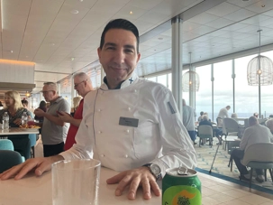 Pour le repas du midi, le buffet de l'Oceanview Café, propsait la thématique des mets italiens. Vous dire combien nous nous sommes regalés! Curieuse, j'ai décidé de rencontrer le chef Marco, sicilien d'origine, pour lui poser quelques questions sur ses menus. À vrai dire, pendant 20 minutes la conversation n'a parlé que ... de bouffe. Ses plats de la journée réflétaient la cuisine sicilienne de sa "nonna", sa grand-maman: penne, fusilli, calamares, poisson blanc, cannoli, tiramisù...Miam miam!
