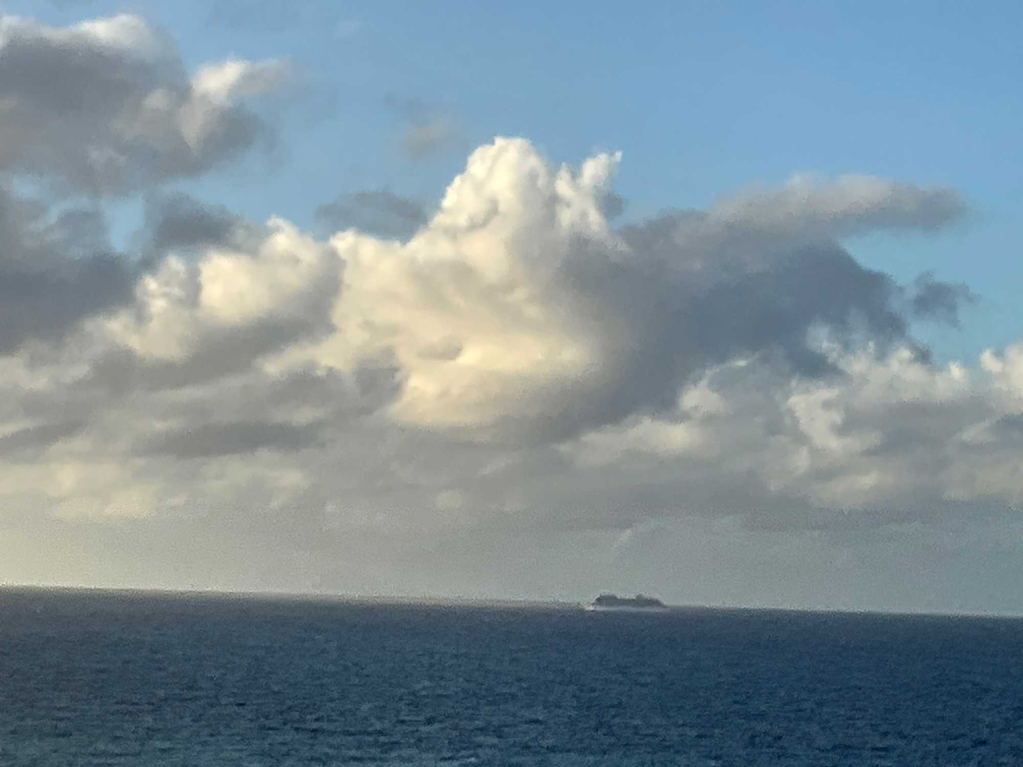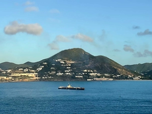 Ce matin, l’amarrage de notre navire s’est effectué à 8h00. Nous sommes les voisins d'un autre navire de croisière; nous sommes chanceux car il paraît que parfois, il y en a jusqu'à huit, attirant de 15 000 à 20 000 touristes. Ici, personne ne regarde la météo, c’est toujours du pareil au même ou presque : ensoleillé et chaud. Il y a pire!
