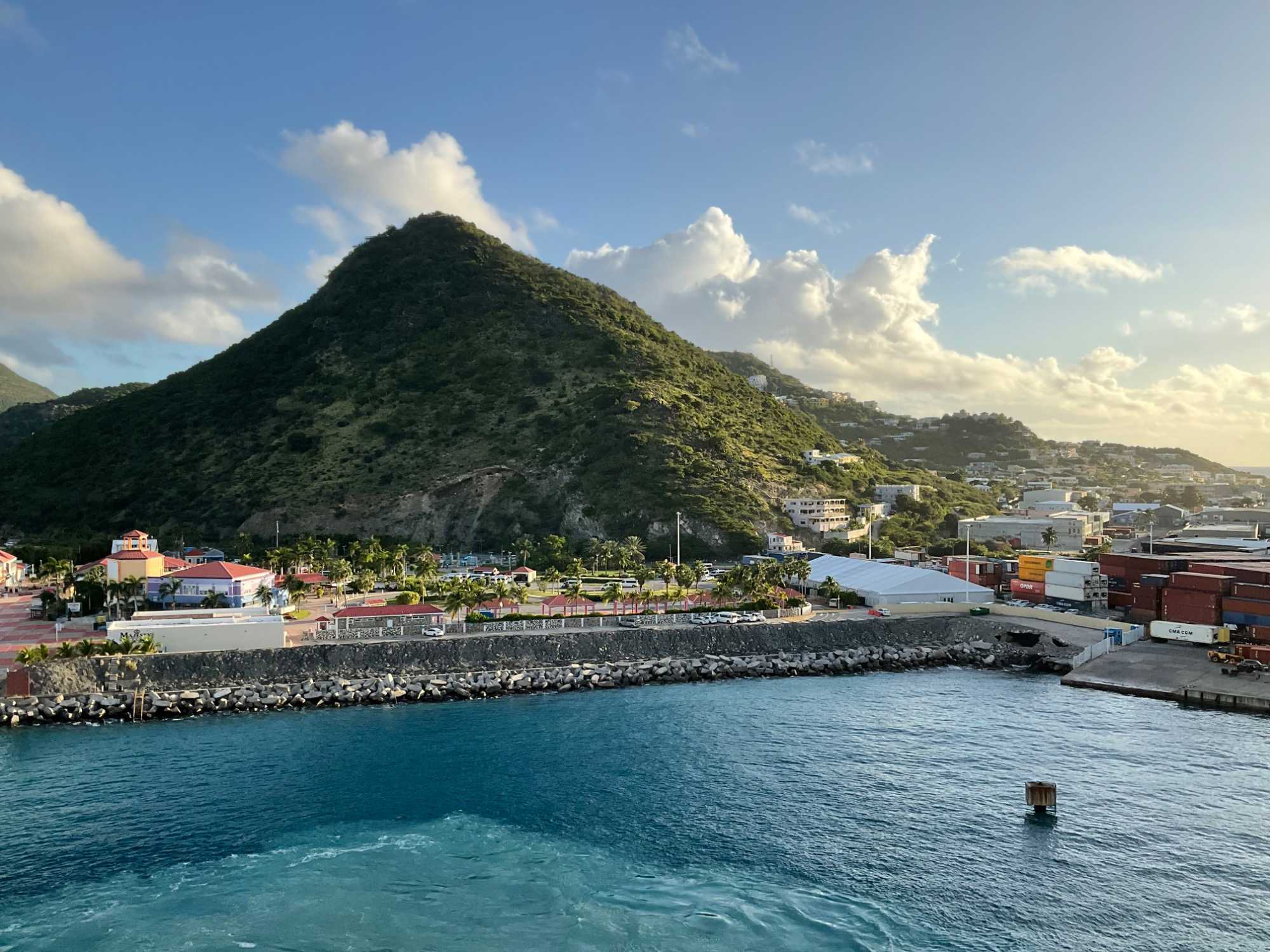 Déjà une belle lumière règne dans le port pour notre arrivée dans l’île de Saint-Martin. Huit joyeux luronnes et lurons se joignent à moi pour cette excursion.