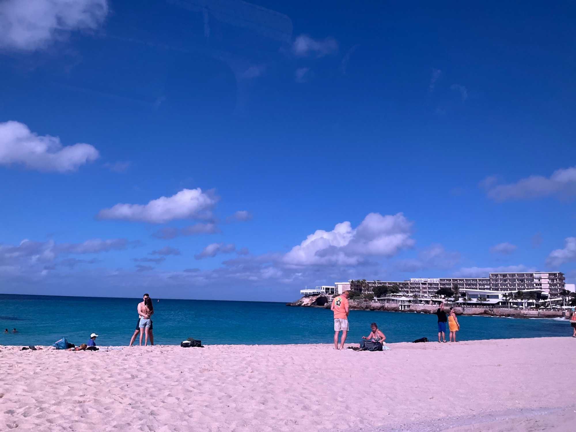 Côté hollandais, la piste d'atterrissage est très courte, juste au bord de l'eau, les avions qui y atterrissent à l’aéroport international Princess Juliana, doivent effectuer une approche très basse à 10-20 m au-dessus de la plage, rendant cette dernière mondialement célèbre.