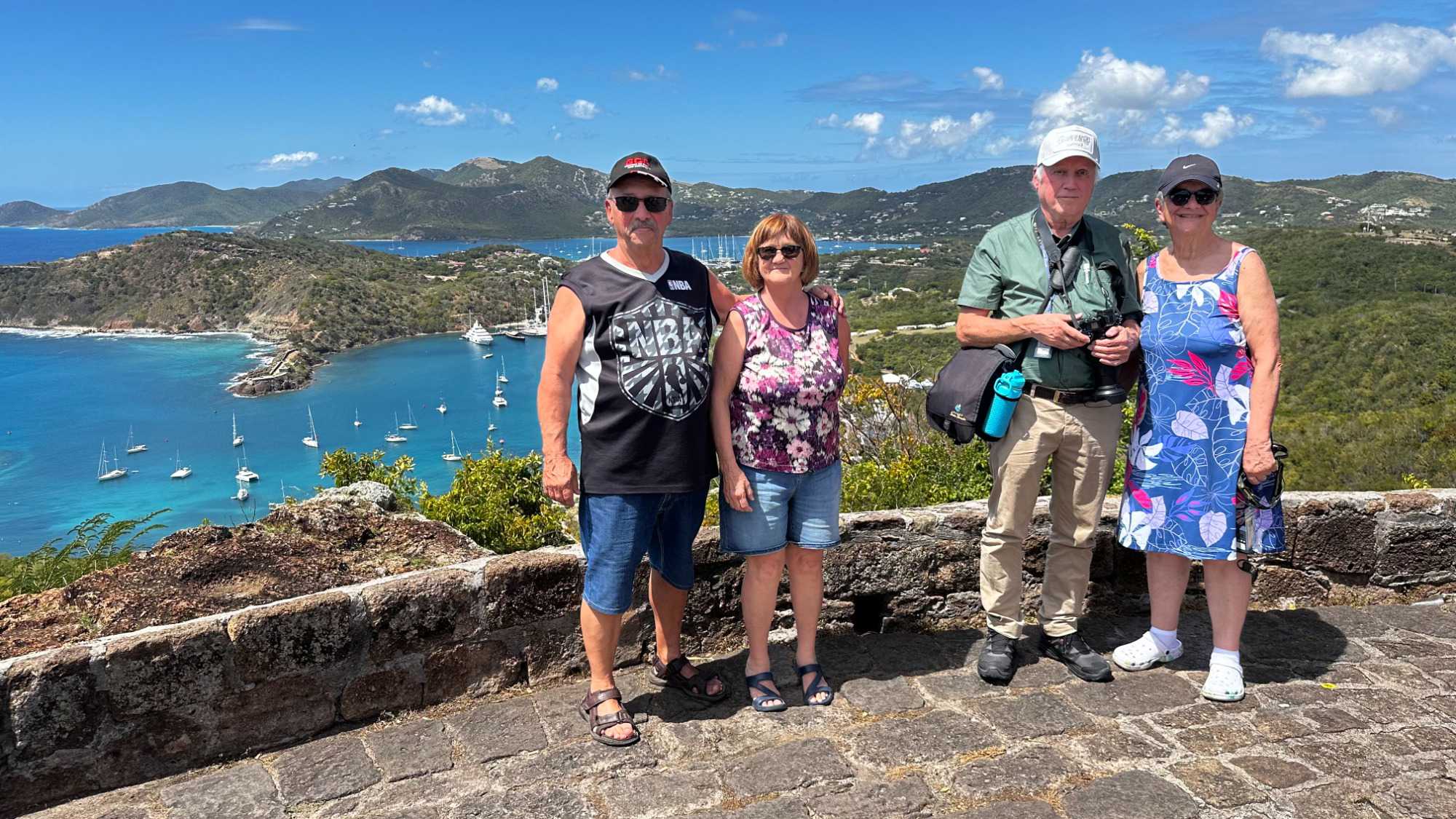 Notre premier arrêt nous a menés vers l’observatoire du Blockhouse du Nelson’s Dockyard, au sud de l’île où on nous a présenté de façon très originale, une animation interactive sur l’histoire de Antigua. Vue époustouflante sur English Harbour et photo de groupe bien sûr !