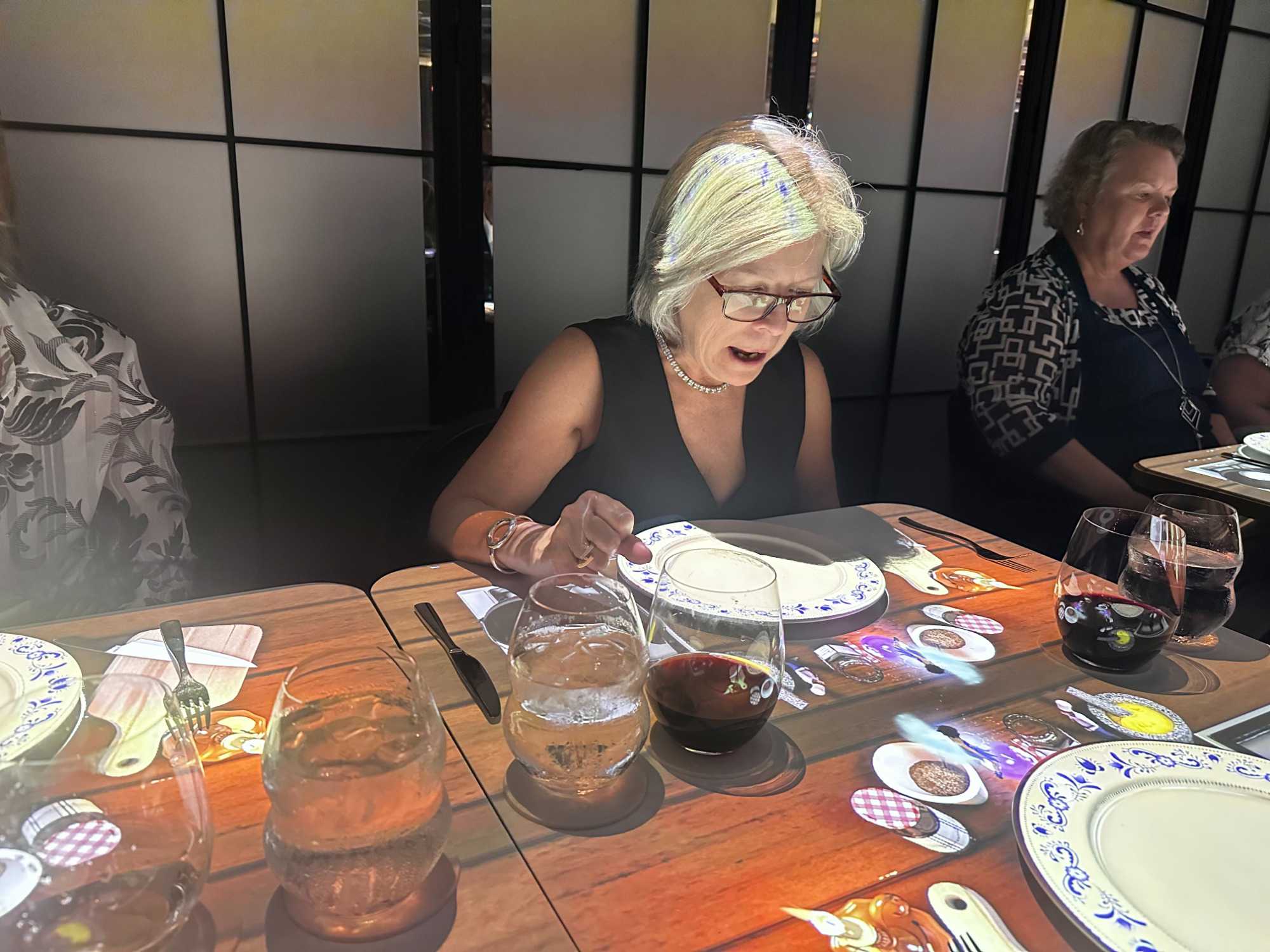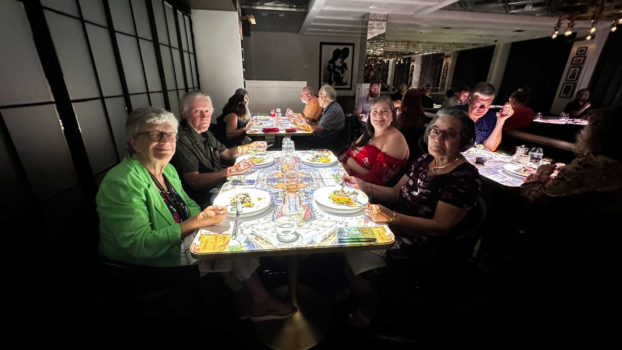 Nous sommes ensuite rentrés lentement au port, remerciant très chaleureusement Georges dont nous avons tout aimé; son humour, son rire, son calme et la qualité des informations qu’il nous a données. Le temps de se procurer les derniers souvenirs avant de rentrer, puis hop, on se prépare pour notre belle soirée au restaurant Le Petit Chef, qu’un beau groupe de 22 de nos voyageurs voulaient essayer après en avoir tant entendu parler. Ils n’ont pas été déçus et pour une deuxième fois aujourd’hui, ils sont redevenus enfants en regardant le Petit Chef s’animer sous leurs yeux. Quelle belle journée !