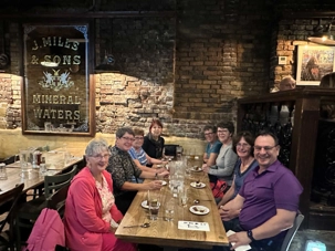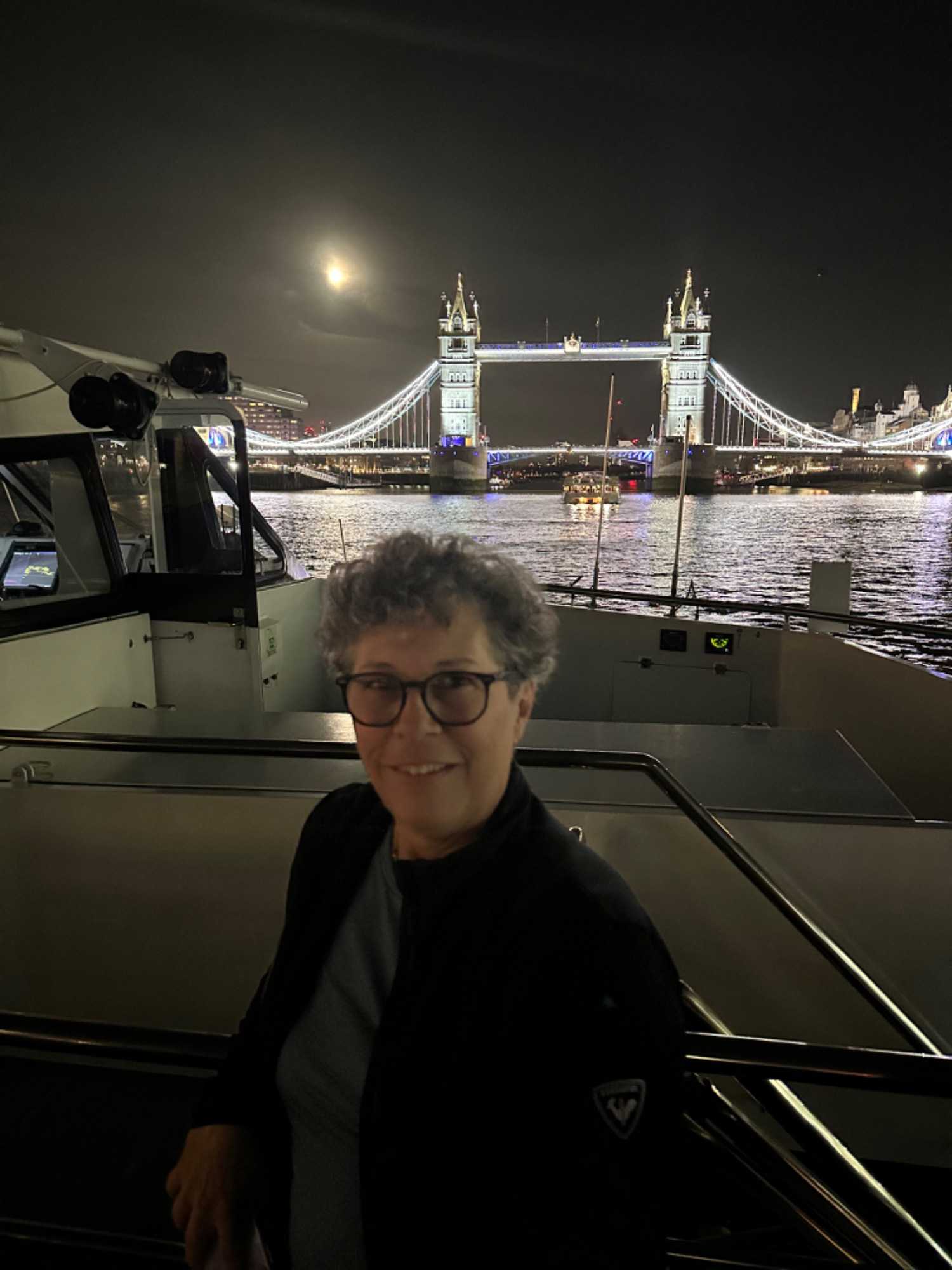 Nous prenons le lunch dans un typique pub anglais, le Minories ou deux classiques nous attendent soit, le fish&chips et le sticky toffee pudding. Situé sous les rails, on sent les tables vibrer au passage des trains. Impressionnant ! En début d’après-midi, Martin offre à plusieurs personnes de les déposer au Covent Garden pour apprécier davantage la vie de quartier. La majorité choisitde rentrer à l’hôtel pour visiter les alentours ou se préparer pour notre sortie sur la Tamise. Nous avons rendez-vous au Westminster Millenium Pier pour un souper-croisière qui nous fera admirer Londres illuminée. Nous découvrons cette grande ville à travers une perspective unique où défilent les bâtiments éclairés la nuit, depuis le magnifique Westminster Bridge jusqu'à Canary Wharf. En savourant un repas 4 services copieux, nous nous sommes laissé porter par les airs des années 70 à 2000 et avons perdu quelques livres à danser une bonne partie de la soirée. Juliette et Luc auront enflammé la piste de danse! Les voyageurs ont grandement apprécié l’expérience et se sont bien amusés.