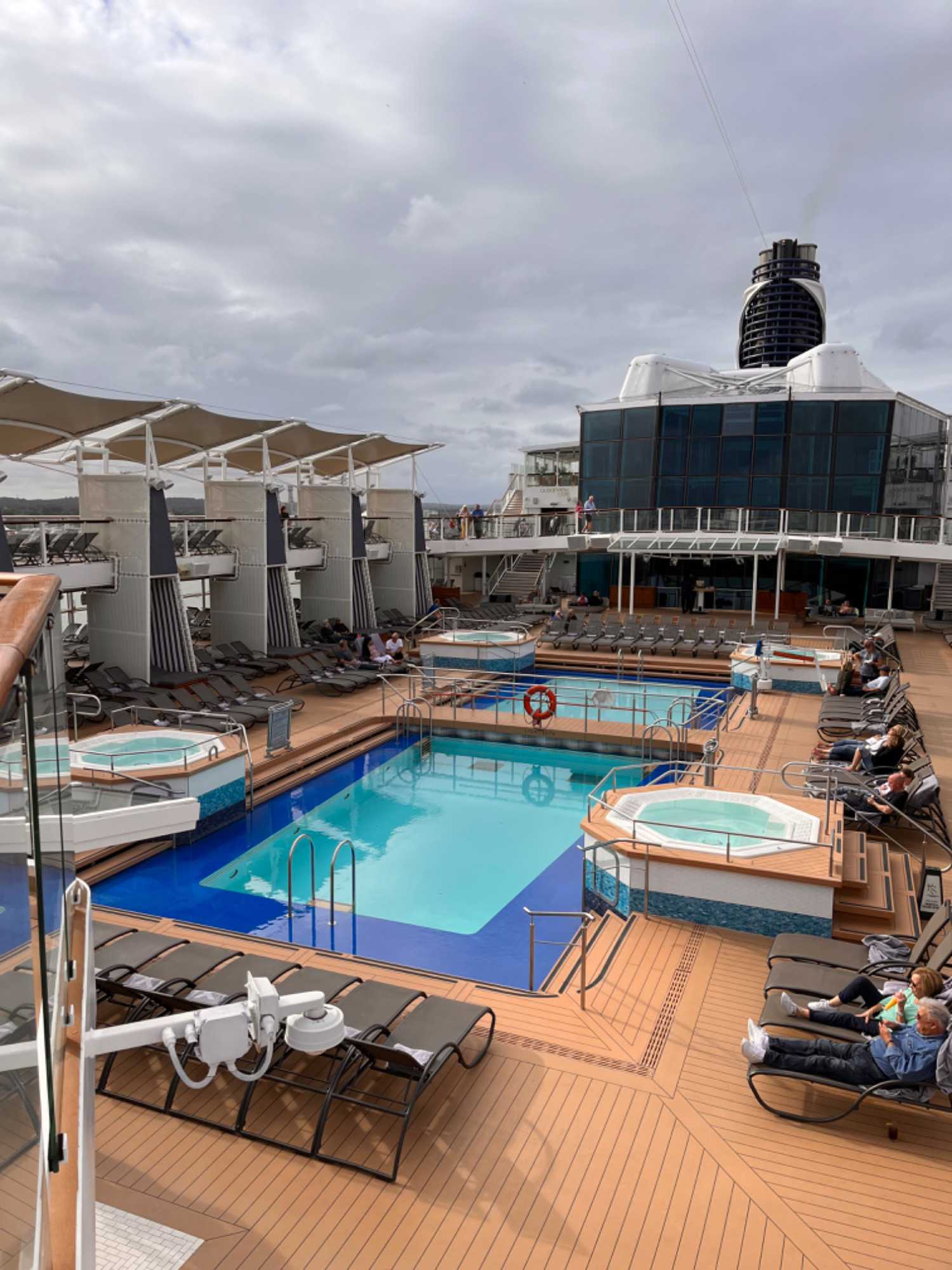 Voici le temps d’embarquer sur notre superbe navire de croisière. L’enregistrement des voyageurs se déroule rondement et nous quittons le port à 16h comme prévu. Tous sont sur le pont du Sunset Bar au 15e étage pour assister au départ. Le navire s’éloigne de plus en plus de la terre ferme et vogue allègrement en direction de notre première escale, Porto, où nous accosterons lundi matin après une journée à naviguer en mer. Nous nous installons pour 11 jours bien confortablement dans nos cabines. C’est très agréable de défaire nos valises et de ne pas s’en préoccuper pour toute la durée du voyage, de vraies vacances pour nos voyageurs à bord de notre hôtel flottant de 122 400 tonnes et d’une capacité d’accueil de 2900 passagers.