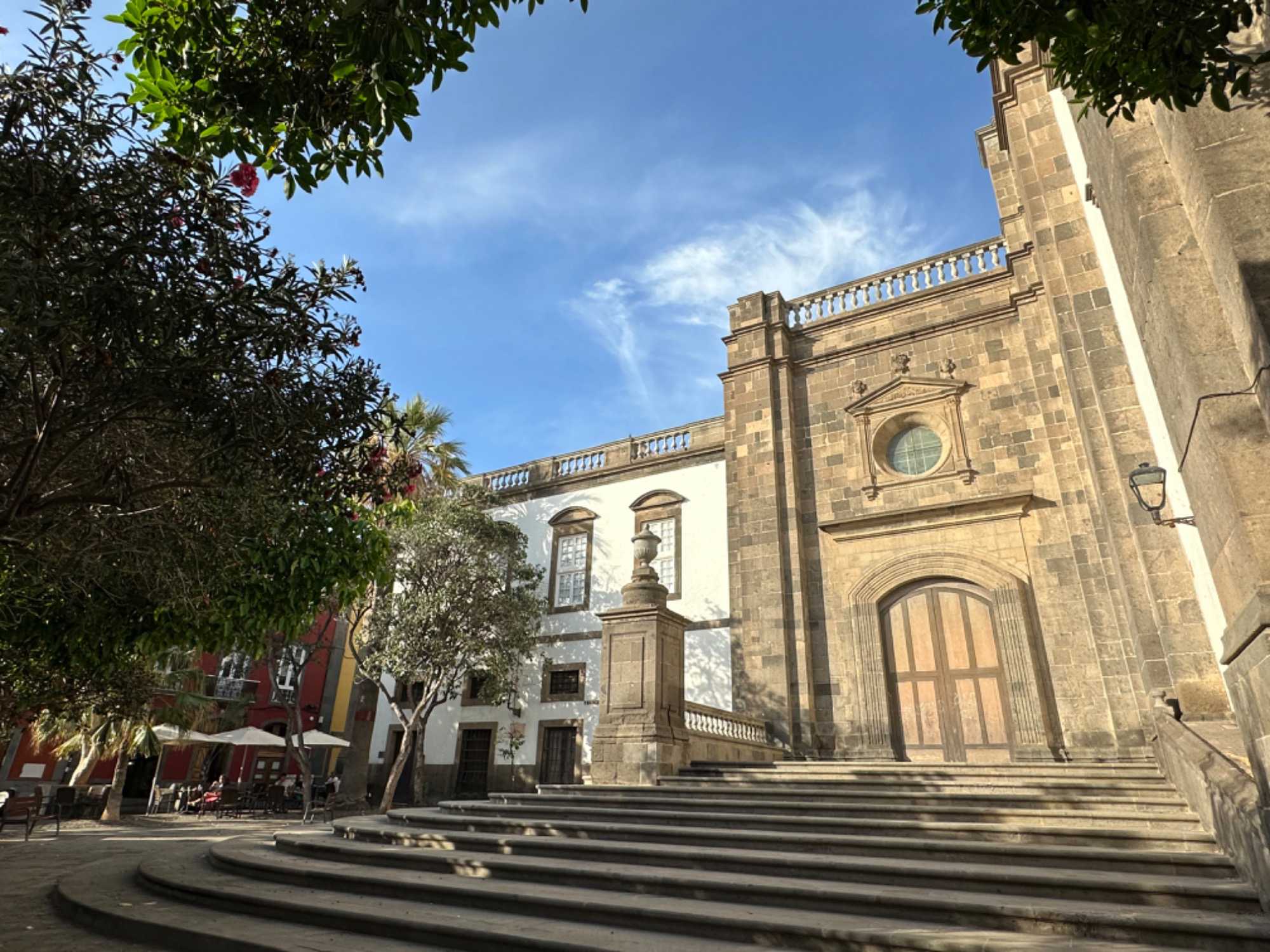 Ensuite, nous retournons au cœur des rues piétonnes de Las Palmas déguster un succulent repas trois services chez La Pepa de Triana. L’entrée de fromage local, enroulée d’une pâte fine, nous a tous conquise. L’entrecôte de bœuf, dont on a pu terminer la cuisson par nous-mêmes sur un grill de table, nous a charmés. La glace à la vanille nappée d’une marmelade d’amandes et miel de l’île fut la bienvenue avec cette température de 36 degrés bien sentie.
