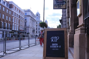 Ce qui attire notre regard est sans doute la plus longue file de londoniens et des autres visiteurs jamais vue qui attendent de pouvoir rendre un dernier hommage à la Reine, exposée en chapelle ardente au Palais de Westminster. On dit que plus de 750 000 personnes attendent nuit et jour pendant plus de 20 heures avant d’y accéder! La file atteindrait 8 à 10 km.