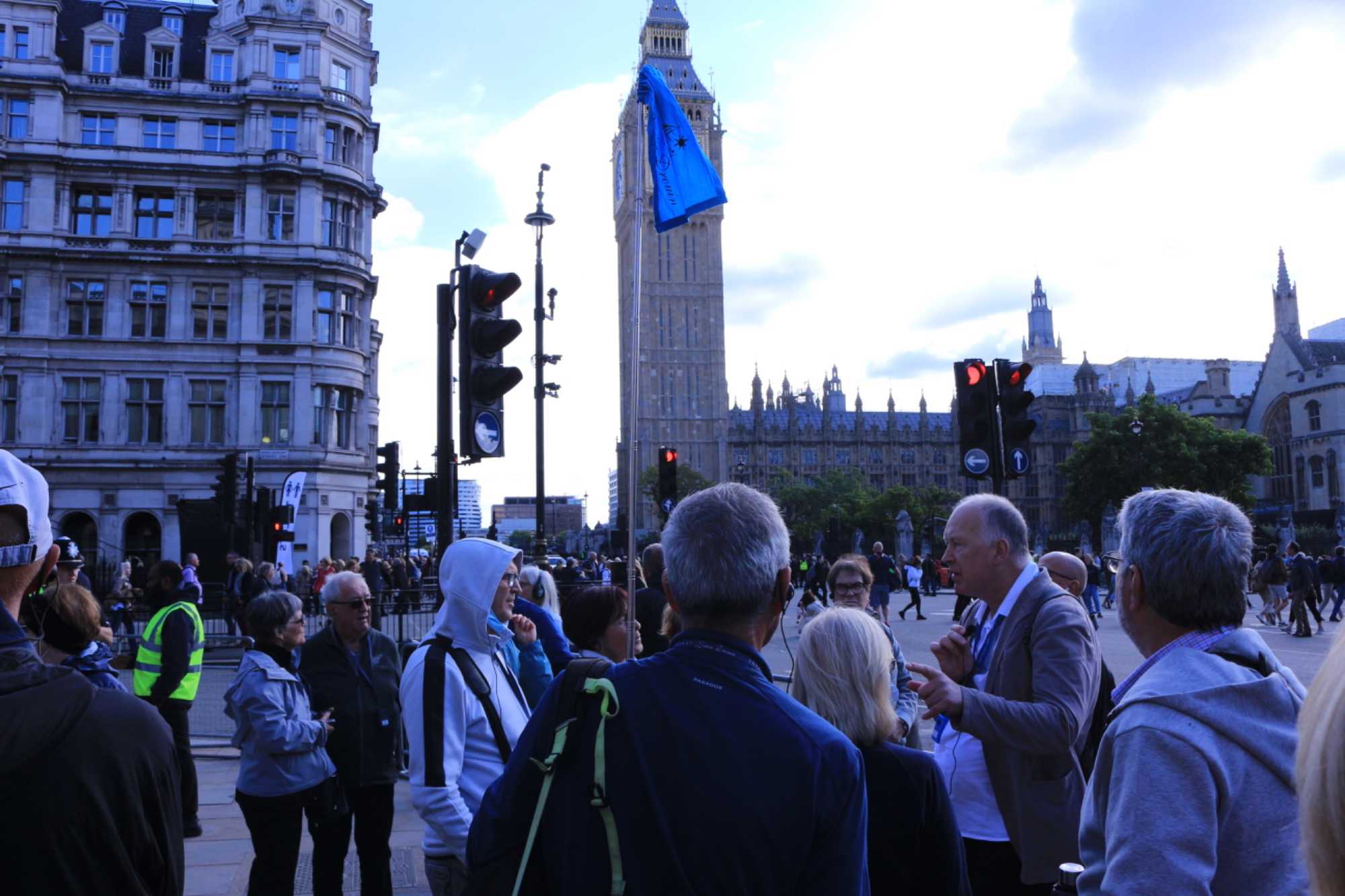 Une fois montés à bord de notre confortable autocar, les présentations faites, nous roulons vers le centre-ville de Londres situé à environ 45 minutes de l’aéroport Heathrow. Martin profite de ce temps pour nous décrire le programme de la journée mais aussi de toute l’agitation qui s’y déroule ces temps-ci.
