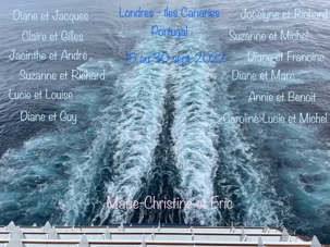 En terminant ce récit d’un voyage mémorable, Eric et moi, aimerions remercier, sincèrement et chaleureusement, chacun des membres de ce groupe. Vous avez fait confiance à Voyage Louise Drouin, vous nous avez fait confiance aussi et, bien que plusieurs d’entre-nous n’avions pas voyagé depuis près de 2 ans et demi, nous avons pu vivre des moments exceptionnels ! Nous espérons que vous avez apprécié ce parcours à Londres et en escale aux îles Canaries, à Lisbonne et à Porto autant que nous avons apprécié être des vôtres. À vous fidèles lecteurs, amis et famille, nous espérons avoir su vous donner l’envie de nous lire et de faire prochainement vous aussi, ce voyage tant rêvé avec Voyage Louise Drouin !