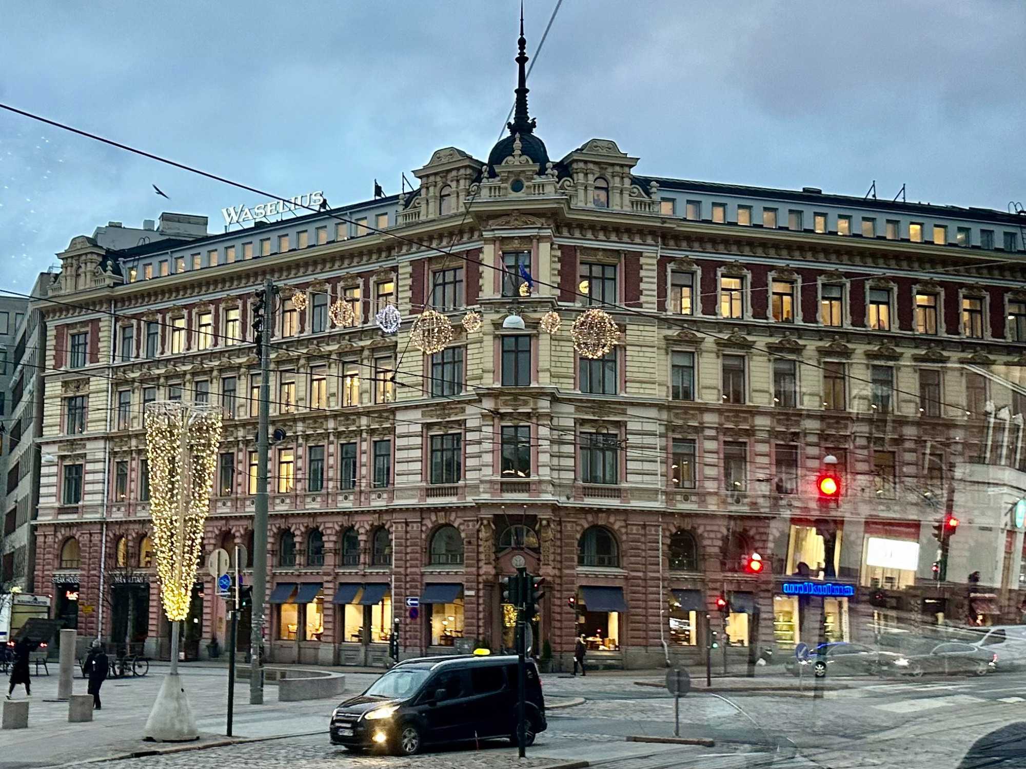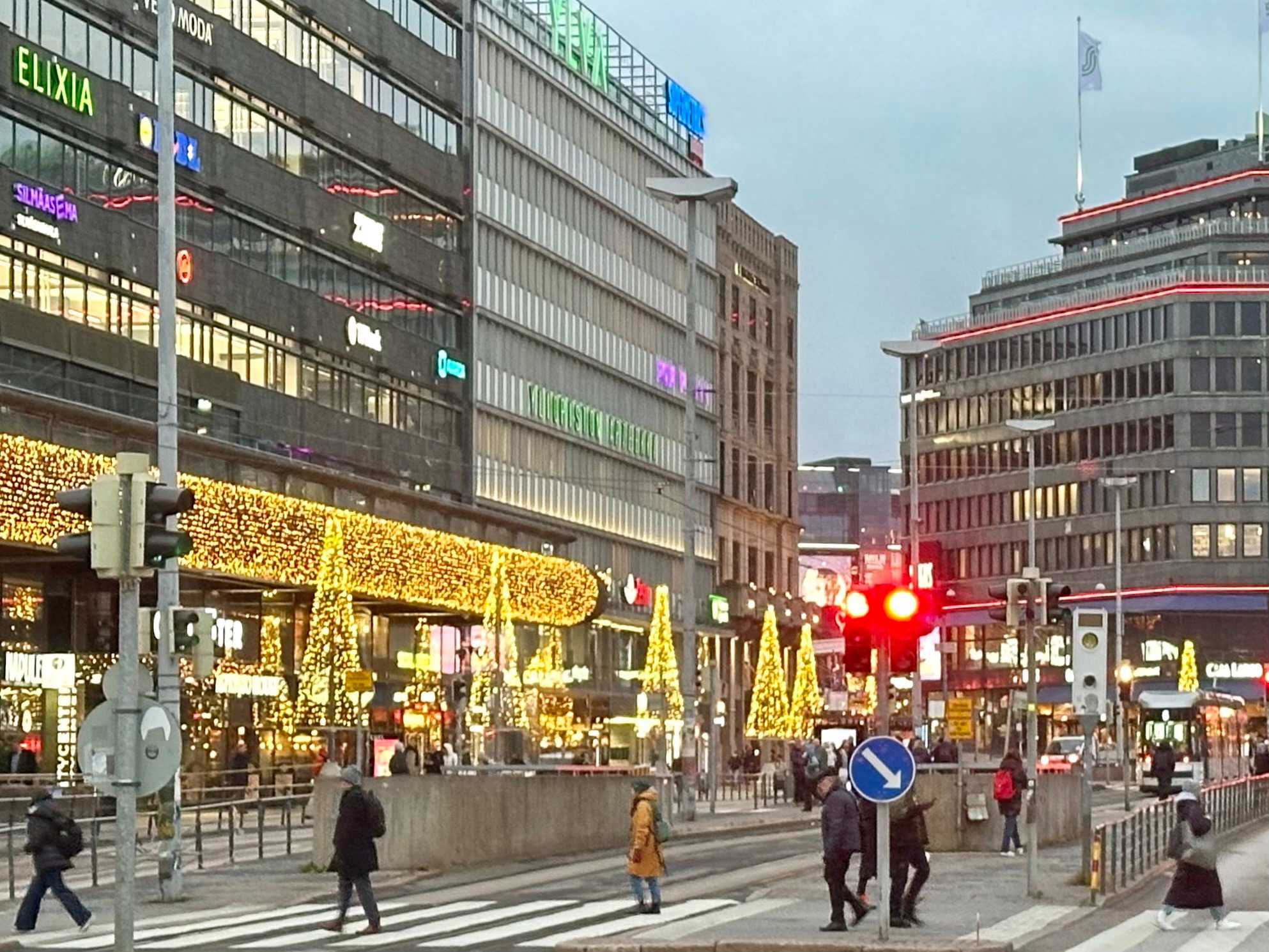 Notre départ ce matin est prévu au lever du jour…. Et oui on appelle cela des vacances! Je blague mais pour le départ au lever du jour c’est bien vrai mais ici en Finlande le 2 décembre le soleil se lève à 9 h 00 et oui juste à cette heure et dire que l’on se plaint au Québec. La nuit a été réparatrice car ce matin tous sont de très bonne humeur. C’est amusant de voir se lever le jour à 9 heures du matin. Après un excellent petit déjeuner, nous retrouvons à nouveau notre charmant et éloquent guide Rodolphe en ce lundi matin. Nous prenons place à bord de notre autobus pour faire notre tour de ville d’Helsinki ainsi que la découverte de Porvoo. C’est un lundi et la circulation est tout de même très bonne sans embouteillage. Nous parcourons une partie de la ville en écoutant les commentaires de Rodolphe qui nous en parle avec amour de cette ville qu’il a choisi, il y a de cela 26 ans pour y vivre. Helsinki est une ville côtière de charme dotée d'une touche unique avec seulement 670,000 habitants au centre de la ville, elle est encore de dimension humaine. Campée au bord du golfe de Finlande, c'est un endroit où la culture urbaine a rendez-vous avec la nature et la mer. Le mode de vie détendu propre aux pays nordiques et la gentillesse de ses habitants nous fait apprécier sans difficulté cette petite métropole nordique, qui est aussi la capitale du pays le plus heureux du monde! Helsinki est une ville très agréable avec son centre-ville et ses quartiers environnants qui fait augmenter la population à environ 1,6 millions de personnes. Une ville à taille humaine qui offre de beaux endroits de détente avec ses nombreux parcs et son bord de mer donnant sur la mer Baltique. C’est bien différent de découvrir ces endroits en cette période estivale où les décorations sont omniprésentes un peu partout dans la ville. Les décorations me fascinent toujours et j’ai un grand plaisir à parcourir la ville avec ses lumières qui ornent les monuments et les bâtiments du centre-ville.