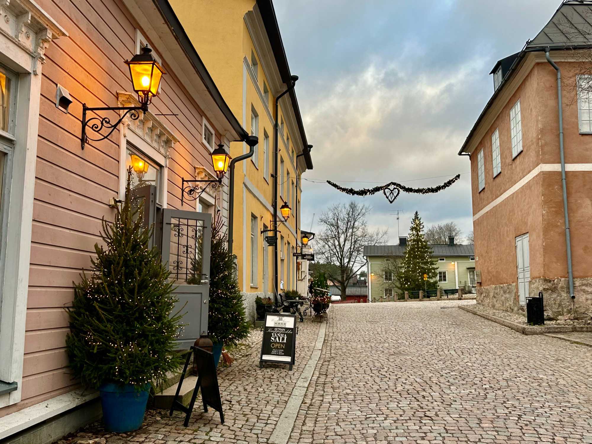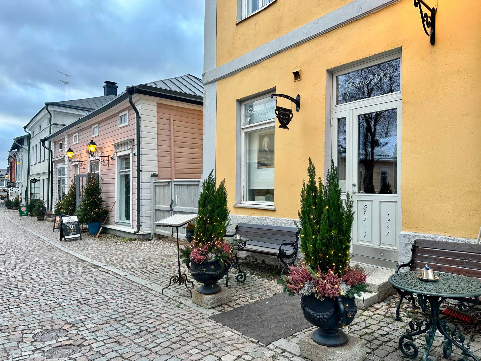Nous nous éloignons du centre-ville pour prendre la direction de Porvoo, située à quelques 50 km d’Helsinki. Proche d’Helsinki, la charmante ville de Porvoo est idéale pour une excursion d’un jour axée sur l’art, la culture et la cuisine traditionnelle de Finlande. Elle est aussi connue pour son ambiance bucolique et sereine que pour ses chocolats, que nous avons dégustés ! Porvoo est un ancien centre d’art, de design et d’architecture pittoresque, entourés par une nature apaisante et de nombreux restaurants faisant la part belle à la cuisine locale. Porvoo est une charmante destination pour nous les touristes en quête d’histoire, de paysage et de couleur locale. Nous sommes heureux d’arriver dans cette jolie ville toute colorée ou la vie semble s’être arrêtée.