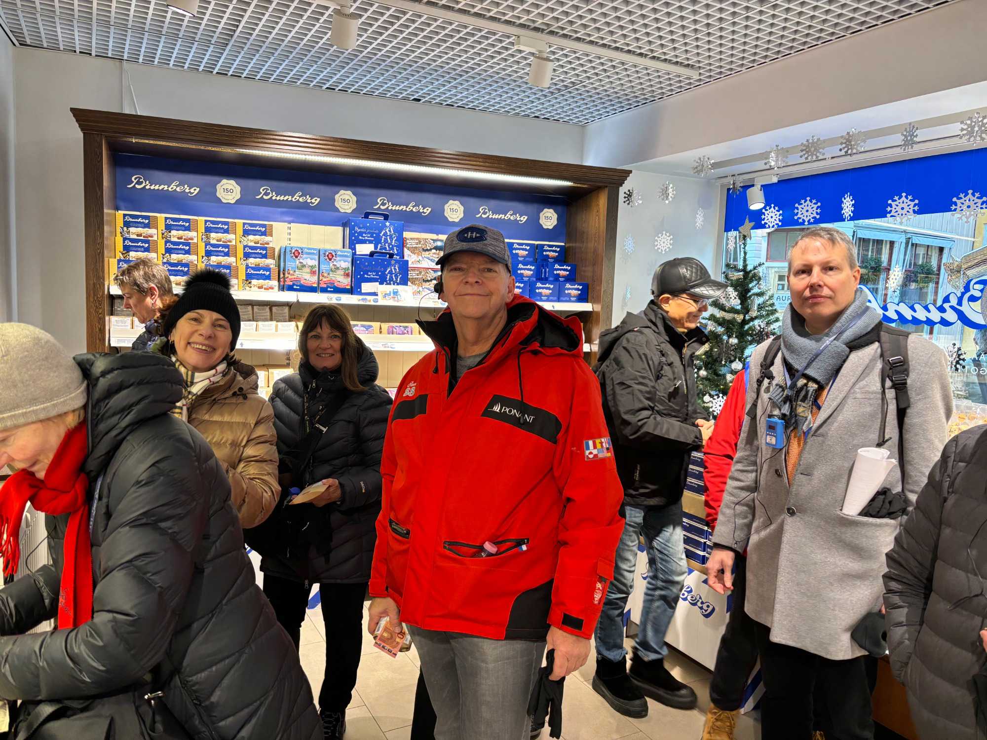Nous accompagnons Rodolphe qui nous fait un très joli tour de ville à pied. Comme la ville est toute petite et ne compte que 57,000 habitants, c’est difficile de s’y perdre et on peut prendre plaisir à parcourir les petites rues avec ses boutiques et ses petits cafés. La ville est vraiment comme sur les cartes postales et nous en profitons pour faire de bien jolies photos toutes colorées. Porvoo est la deuxième plus vieille ville de Finlande, plus connue pour sa vieille ville en bois, ses boutiques et ses cafés charmants et ses entrepôts rouge ocre qui se dressent au bord de la rivière. Ses rues pavées cernées de bâtisses semblables à d’anciennes maisons de poupées regorgent de restaurants, de boutiques de produits artisanaux et d’objets pour la maison et de galeries. Située au bord de la rivière Porvoonjoki et du grand golfe de Finlande, cette ville date du Moyen Age. Son histoire se balance entre la féodalité locale et la présence russe qui s’affirma en 1809 par le traité de Porvoo, où le fameux tsar Alexandre Ier vint en personne le signer. A noter que Saint-Pétersbourg n’est qu’à 344 km de route. Il reste de ces époques médiévales une très charmante ville ancienne aux maisons de bois, toujours très colorées. Le nouveau centre culturel, l’Art Factory, accueille des expositions, des concerts et des espaces de travail pour les artistes. Notre lunch était prévu dans un petit restaurant typique de la ville où nous avons dégusté un repas de style familial qui était délicieux encore une fois. La nourriture ressemble beaucoup à la nôtre au Québec avec des plats simples mais délicieux. La tarte aux bleuets a été très appréciée de tous. Après avoir bien mangé, nous avons repris le chemin du retour pour revenir vers la ville afin de terminer notre tour de ville avant de monter à bord de notre navire vers 16 heures.