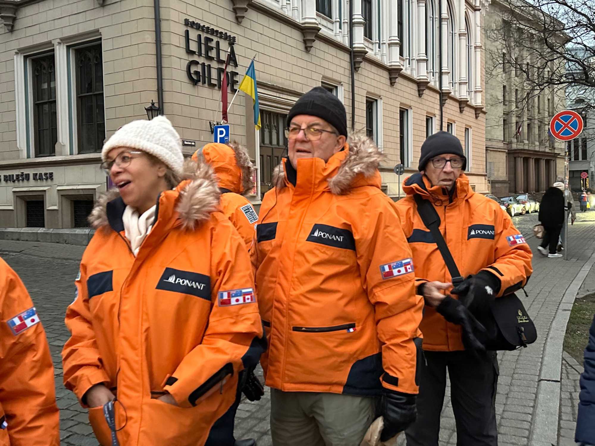 Bonjour nous voici ce matin en Lettonie, l’un des pays balte que j’ai eu la chance de visiter à quelques reprises. Nous sommes a Riga dans la capitale du pays qui est une superbe ville. J’était très heureuse de voir que Ponant avait choisi d’y faire escale car ce n’est pas souvent que les navires de croisière viennent jusqu’en Lettonie. Ce pays est divisé en en 26 districts. La langue officielle est le letton. On y parle aussi le russe mais présentement le russe est souvent banni des écoles, c’est un peu triste car plusieurs personnes âgés parlent plus le russe que le letton. La population est majoritairement protestante. Nous rencontrons notre guide locale qui sera avec nous pour une bonne partie de la journée. Ponant organisait nos excursions dans les ports d’escale et tout était très bien organisé. J’avais sélectionné une belle découverte pour la journée afin de découvrir la campagne lettone principalement la ville de Sigulda que j’avais bien aimé lors de mon passage précédent. C’est toujours bien intéressant de s’éloigner des villes afin de laisser notre guide nous entretenir sur son pays, c’est ce qu’elle a fait avec brio. La température était très agréable et oui encore très beau aujourd’hui mais pas de neige encore à date. Nous quittons le port de Riga et nous avons environ 20 minutes pour atteindre la ville de Riga que nous traverserons en route vers notre première découverte lettone. Sigulda se trouve à 53 km à l'est de Riga. Surnommée "la Suisse lettone", la région de Sigulda voit châteaux médiévaux et grottes légendaires se succéder sur l'une des plus belles étendues de la vallée de la Gauja. Sigulda, principal point d'accès au parc national de la Gauja, est une toute petite station thermale qui se transforme en station de ski l'hiver. Peu de choses restent de l'ancien château des chevaliers Porte-Glaive cependant, les ruines au cœur de la forêt sont assez évocatrices du passé mouvementé de la région de plus, on y bénéficie d'une vue magnifique sur le château de Turaida, ancienne propriété de l'archevêque. Cet édifice est le résultat d'une reconstruction récente qui en fait le château le plus ancien et le plus achevé de la région de Sigulda. Nous passons devant les descentes aménagés pour essayer le bobsleigh ou la luge qui est bien populaire d’après notre guide. La visite de la ville historique de Sigulda est une étape que les férus d'histoire ne doivent pas manquer lors d'un voyage en Lettonie. Nous nous arrêtons pour la visite les ruines de l’un des château fort, édifié au XIIIe siècle de part et d’autre de la rivière Gauja. Nous apercevons de l’autre côté le deuxième château, celui de Turaïda que nous ne visiterons pas car le temps nous aurait manqué. Après quelques achats aux petites boutiques nous continuons vers la grotte Gutmanis et la grotte de Viktors qui jouent un rôle important dans le folklore local. Ce lieu est aussi la tombe d’une légende letonne. Celle de Maija, surnommée la Rose de Turaida en raison de beauté. Selon la légende, cette ravissante jeune fiancée préféra la mort au déshonneur. Notre guide nous partage cette légende un peu triste. Nous remontons à bord afin de nous diriger vers notre restaurant local sélectionner pour le lunch. Nous étions attendus dans cet endroit authentique fait en bois rond. Nous y avons dégusté une cuisine locale qui était délicieuse. L’un de nos voyageurs a eu le bonheur de revoir la jeune fille qu’il avait hébergé chez lui durant une année lors d’un échange étudiant. Une belle retrouvaille pour Raymond et elle était venue le retrouver avec son conjoint et sa belle grande fille.