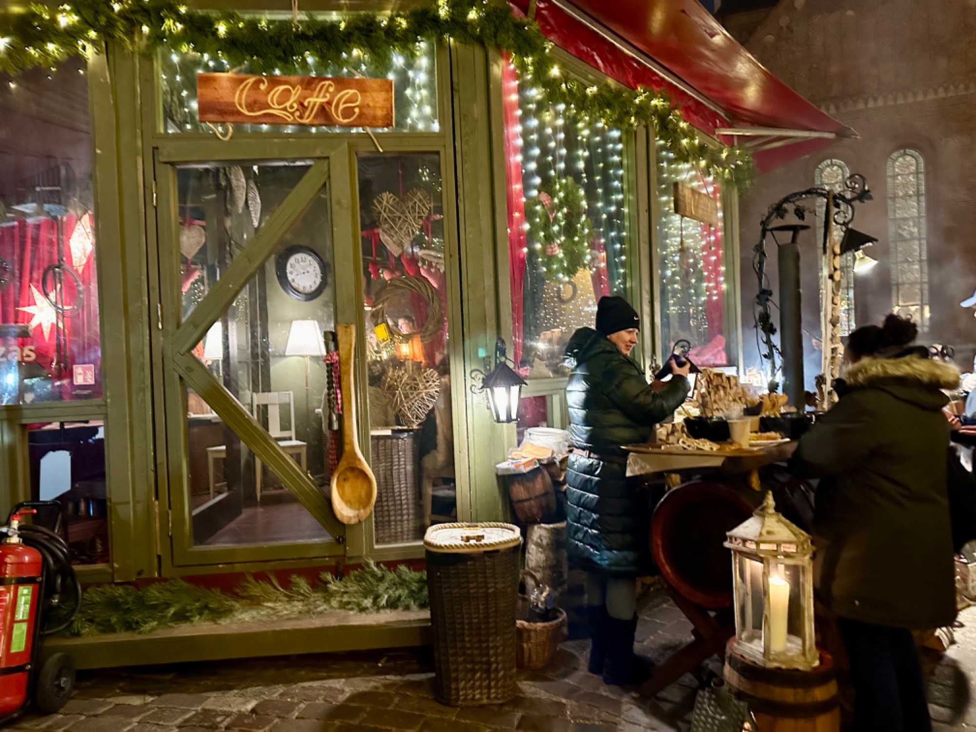 Après avoir parcouru cette intéressante rue de Riga nous nous dirigeons au centre-ville pour visiter la ville et aussi pour faire la découverte de son marché de nuit. Il fait déjà nuit en milieu d’après-midi et nous pouvons admirer les décorations lumineuses de la ville. Riga est magnifique et de la découvrir avec ses décorations, ses sapins et son marché de nuit c’est magique encore une fois. Son marché est très authentique et les odeurs de plats locaux cuisinés nous donnes envie d’y goûter. Cet endroit est vraiment différent et avec les photos vous verrez la différence de ce marché typique. Les habitants profitent souvent de cette période pour se retrouver et partager un repas à l’extérieur ou y faire quelques achats. Souvent l’on retrouve des caroussels pour les enfants et les petites familles aiment bien y venir. Après notre visite nous reprenons la navette organisée par Ponant pour revenir au navire. Heureuse de ma journée, le temps d’une bonne douche et l’on se retrouve pour une belle activité encore une fois. Ce soir, c’est l’apéro vodka et caviar ou bien champage et caviar.