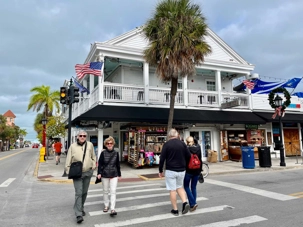 Chemin faisant lors de notre excursion, on voit le grand bâtiment en brique rouge qui est maintenant le musée de la douane, le musée maritime, la maison d’été du président Truman, tout ça en arpentant la rue Duval et la rue Whitehead. Il y a plusieurs coqs sur notre chemin, ils sont en liberté et ne semblent pas être intimidés par les touristes! Nous passons devant le point de rencontre de l'océan Atlantique et du golfe du Mexique. Nous passons aussi devant la célèbre bouée indiquant le point le plus au sud des États-Unis et la direction vers Cuba situé à 145 kilomètres. Puis nous passons devant la maison d’Ernest Hemingway située juste devant le grand phare blanc. Ce fut une visite très agréable et nous avons marché 6 kilomètres. Certains de nos amis retournent directement au navire après l’excursion et d’autres demeurent dans la vieille ville à la recherche de souvenirs.