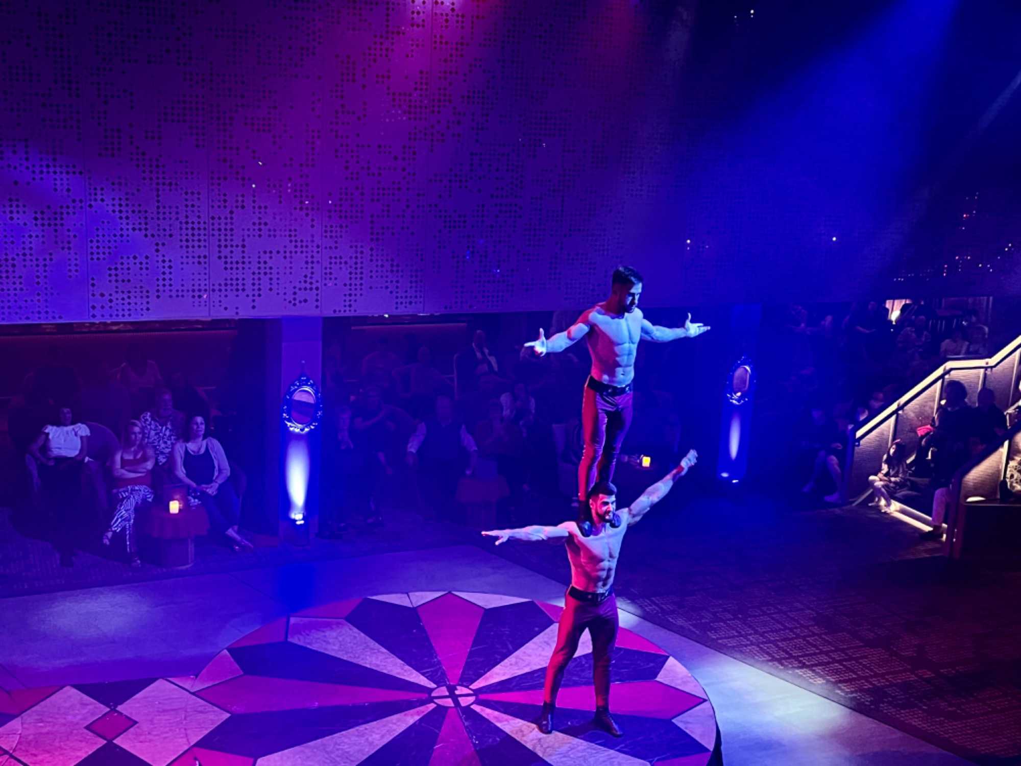 Nous rencontrons nos amis voyageurs à la salle à manger pour parler de la belle journée que nous venons de passer et de celle qui nous attend demain. Suivant la recommandation de notre « cruise director », nous nous sommes ensuite rendus à la salle de spectacle The Club pour aller vivre l’expérience « Caravan », un spectacle de cirque avec hommes forts, acrobates, chanteurs et plusieurs autres talents.