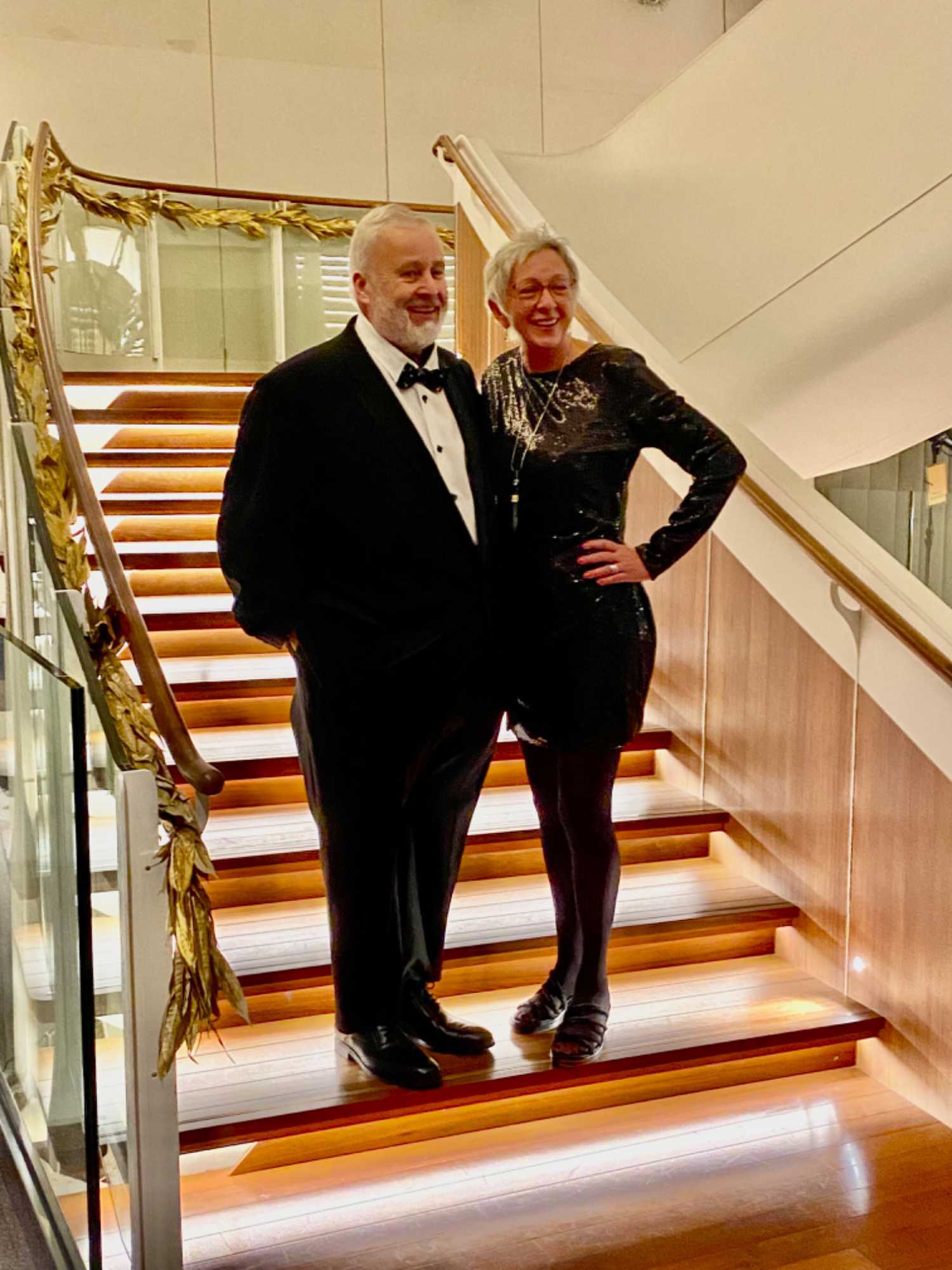 C’est la veille de Noël et ce soir nous avons le souper du capitaine. Tous les voyageurs ont mis leurs plus beaux costumes. Nous en profitons pour faire une photo avec les bons soins d’un photographe professionnel du navire. Tout le groupe a accepté d’être présent pour faire cette photo souvenir.