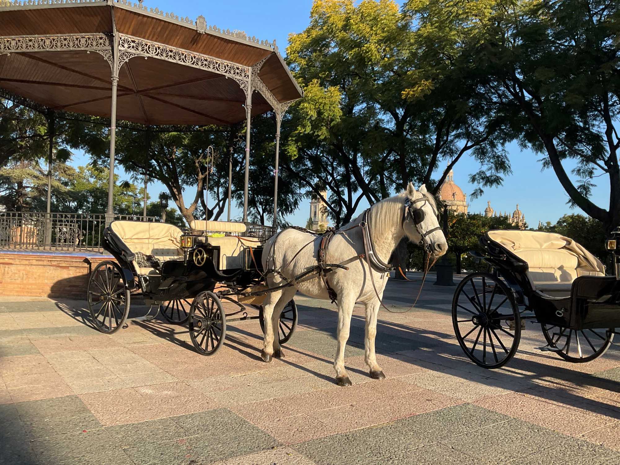 Jerez (212 915 habitants), c’est aussi le flamenco, les matadors, les taureaux et les splendides chevaux réputés pour leur élégance et pour leur race adaptée pour les vents. Les immenses sculptures de bronze disposées un peu partout dans la ville dépeignent l’honneur de ces nobles bêtes et font office d’œuvre d’art. Par tradition, des calèches guident les touristes dans la ville. Nous descendons une rue centrale de la ville, bordée de jacarandas, en saison, cet arbre formé de grappes de fleurs parfumées qui sont en forme de trompette de couleur bleu lavande, nous rappelle la beauté de nos jadis allées d’ormes au Québec. Une impression de sécurité nous envahit. Imaginez l’euphorie si nous étions venus au printemps alors que ces magnifiques géants déversent leur parfum de leurs fleurs bleus et violets. On comprend alors les splendides représentations de fleurs et la Vierge sur les ravissants carreaux de faïence sur les églises d'ici.