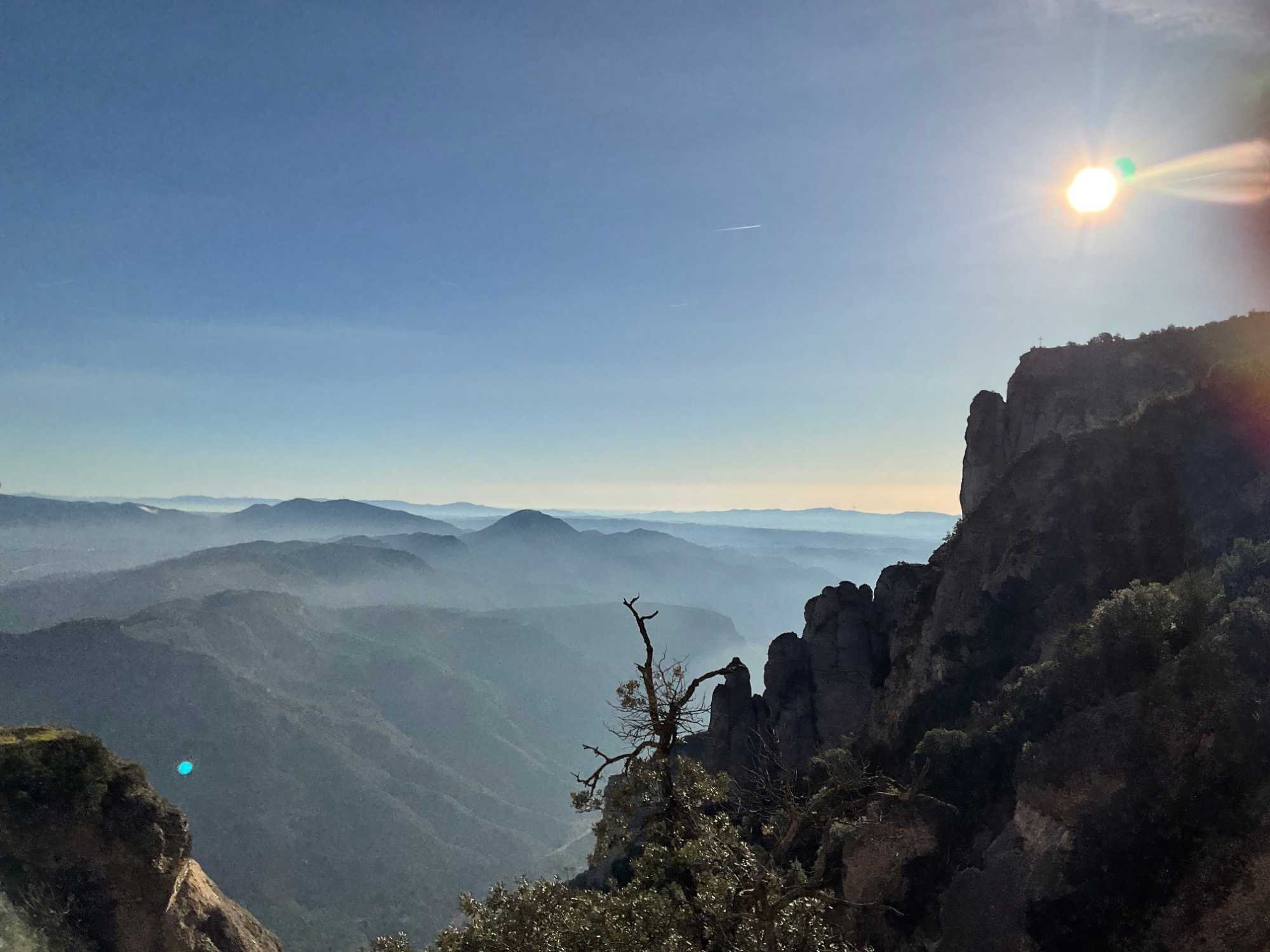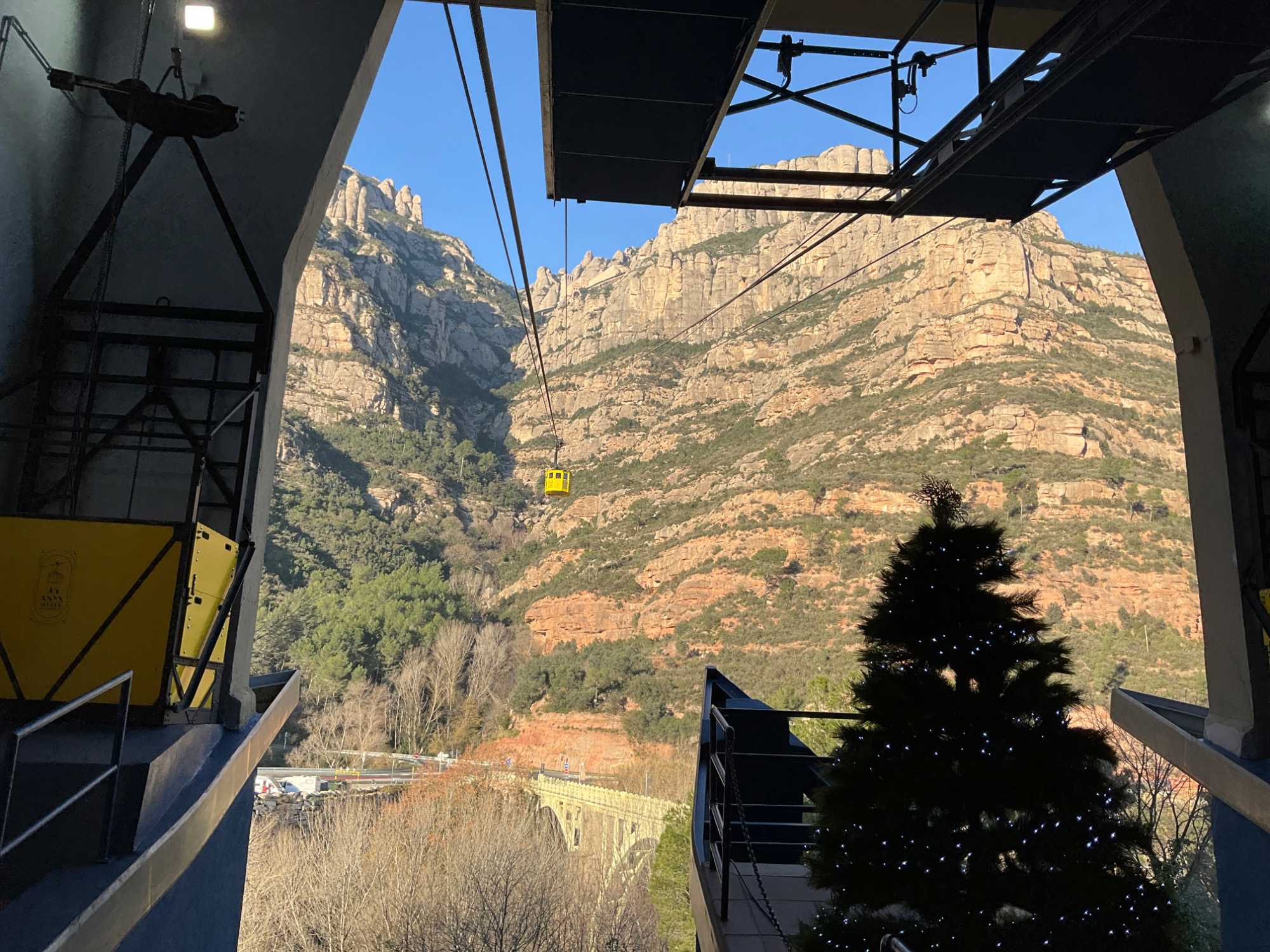 Notre chauffeur du jour, Antonio, nous dirige à 50 km de la ville sur la route vers Montserrat. Des trains ici et là sont visibles à l’horizon mais on n’a pas aperçu le TGV Barcelone Madrid roulant à 625 km/heure. Les collines arides acceptent aussi la présence d’arbres sur son sol.