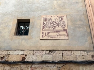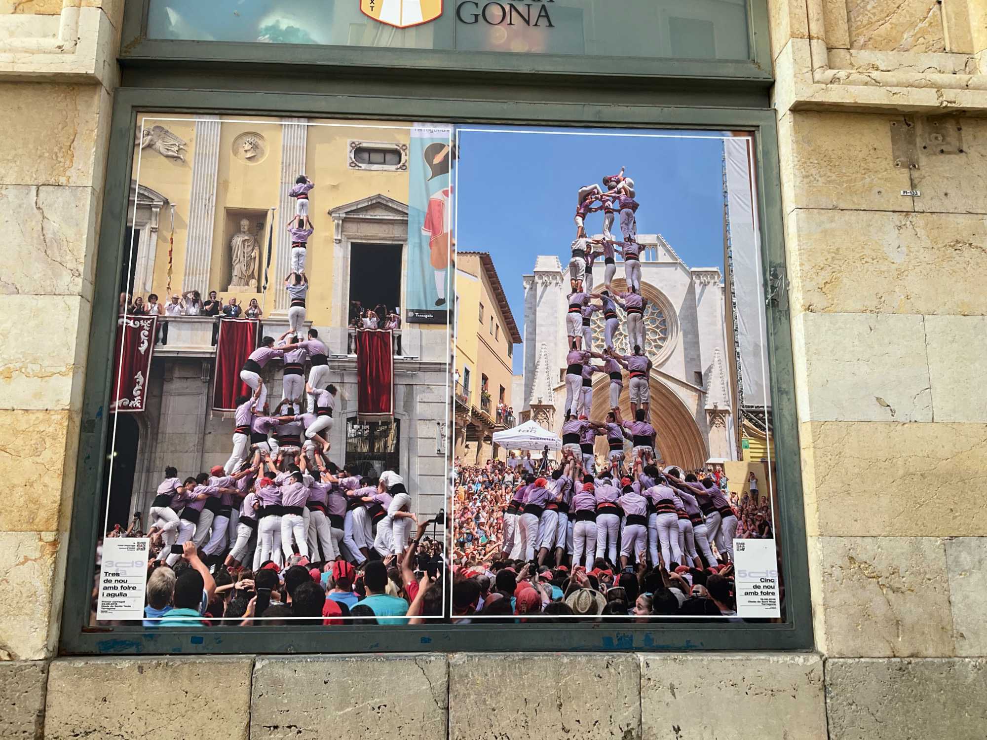 Deux immenses tableaux (voir photos) représentent des "pyramides humaines". Le concours de "Catells" a lieu tous les deux ans et les tarragoniens sont devenir maîtres en la matière. Imaginez le petit enfant qui se retrouve tout en haut de la pyramide! La première édition a eu lieu en 1932 dans l'arène même. Les troupes de tours humaines les plus importantes de toutes la Catalogne se trouvent ici même. Sur certains balcons, on retrouve un drapeau qui identifie que les habitants de ces lieux qui font partie de ces troupes.
