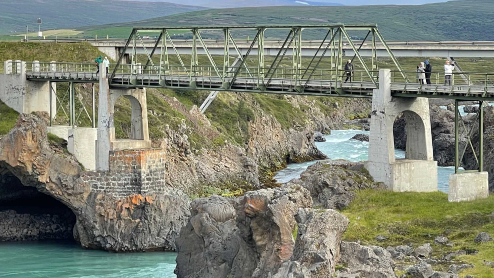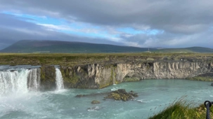En route, arrêt à la cascade Godafoss, nommée la chute des dieux, située à 30 minutes de Akyreyri. Elle est une des plus belles chutes d’Islande. Largement considérée comme un des sites touristiques majeurs du nord du pays, Godafoss est un incontournable. Dans les hauts plateaux du Sprengisandur, la rivière glacière Skjalfandafljot prend sa source dans le glacier Vatnajökull (la plus grande et la plus volumineuse calotte glaciaire d’Islande, et la deuxième plus grande en Europe) avant de traverser des paysages accidentés et donner naissance à la belle cascade Aldeyjarfoss, puis à Godafoss.