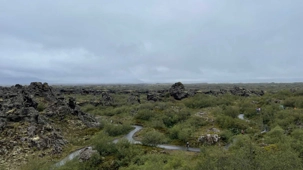 Par la suite, nous visitons les pseudo-cratères de Skútustaðagígar. Ils sont appelés ainsi car ils ne sont pas causés par l’explosion réelle des volcans, mais sont un sous-produit de leur lave en écoulement.