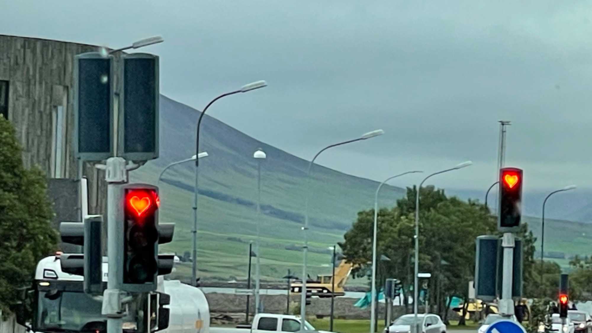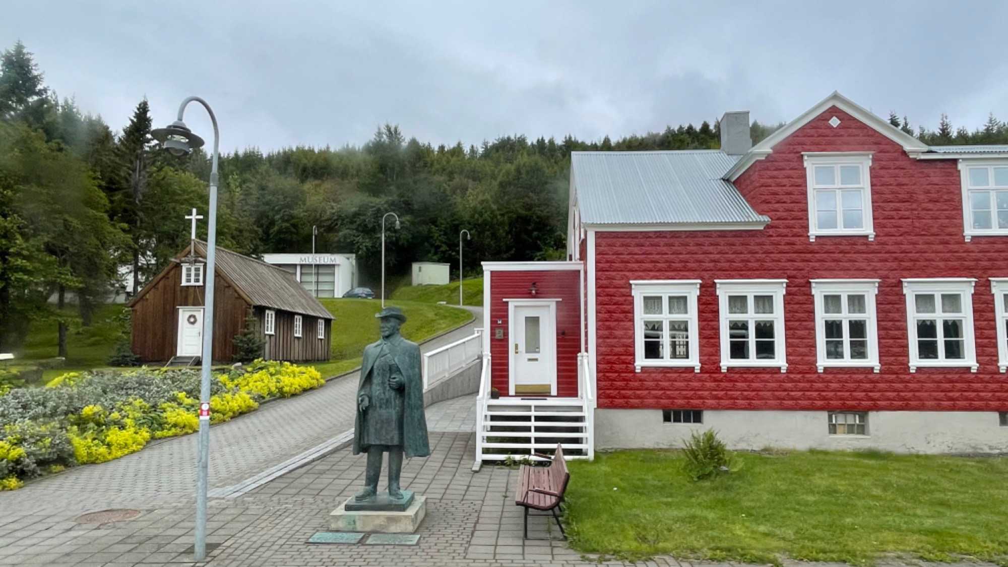 De retour à Akureyri notre chauffeur nous fait un tour d’orientation de la vieille ville de près de 20 000 habitants. Du fait de sa taille et son importance, elle est souvent qualifiée de capitale du nord et est considérée comme une ville étape pour faire une escale en milieu d’itinéraire. La route #1 fait le tour de l’Islande et nous rencontrons fréquemment des cyclistes sur la route. La vieille ville a de jolies maisons colorées construites en bois, ce qui est plutôt rare en Islande! Ce qui est particulier et plutôt inusité ce sont les feux de circulation et le fait que les policiers ne sont pas armés.