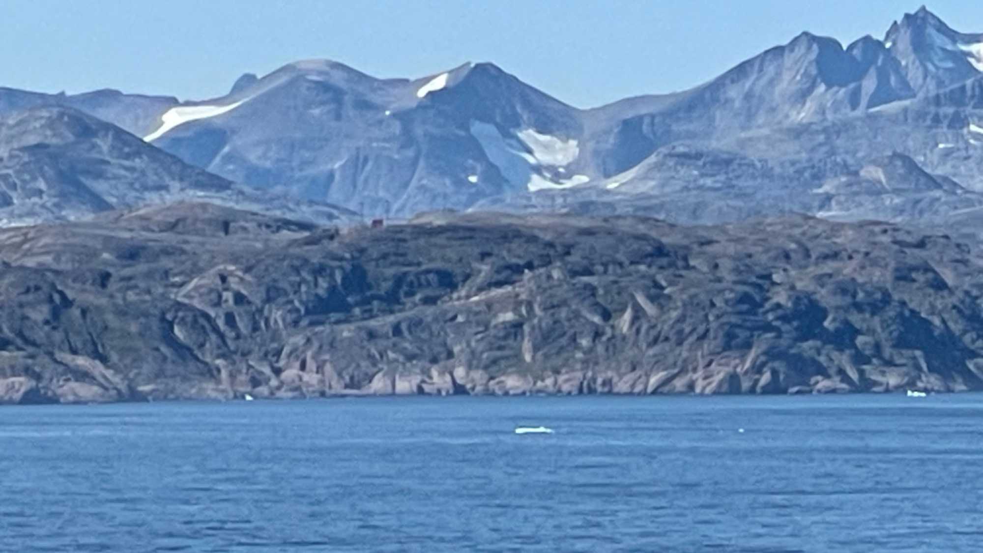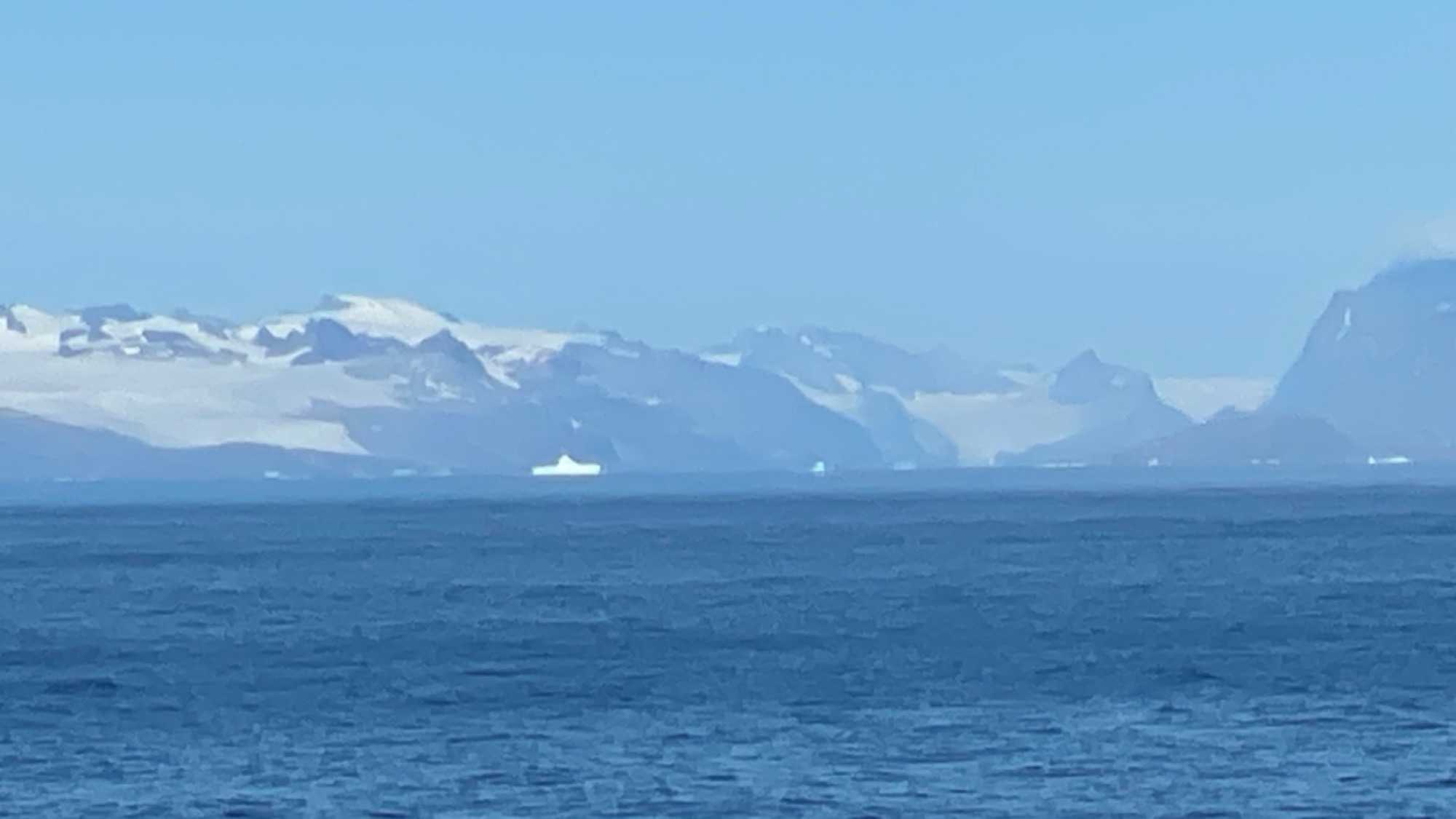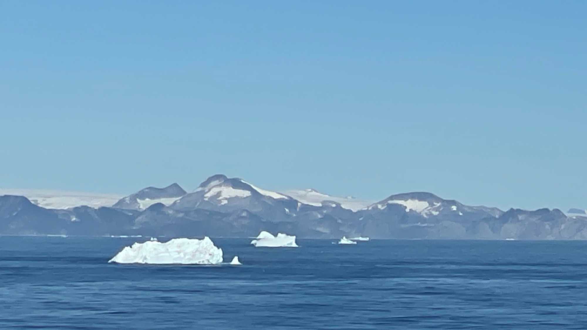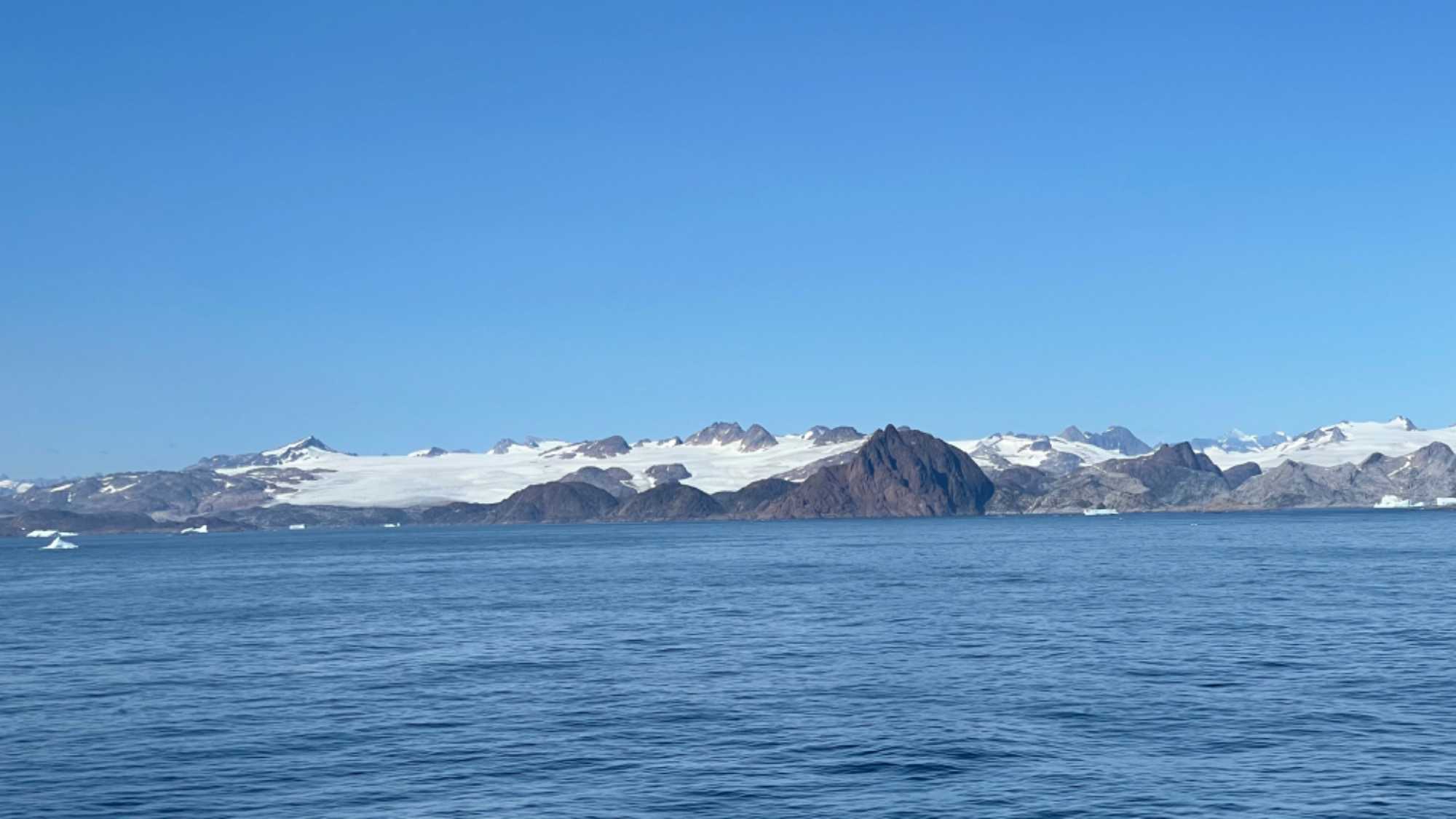 Nous avons navigué tout l’avant-midi avant d’atteindre le Groenland. Au loin, nous pouvons distinguer la terre!