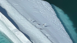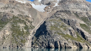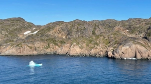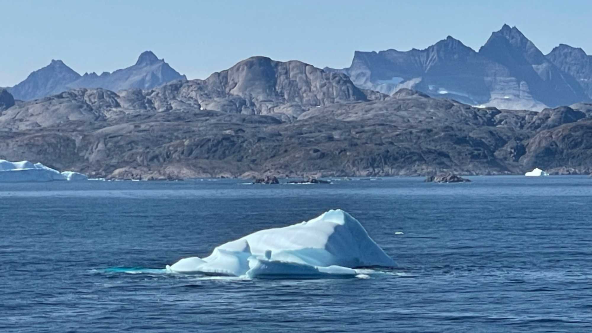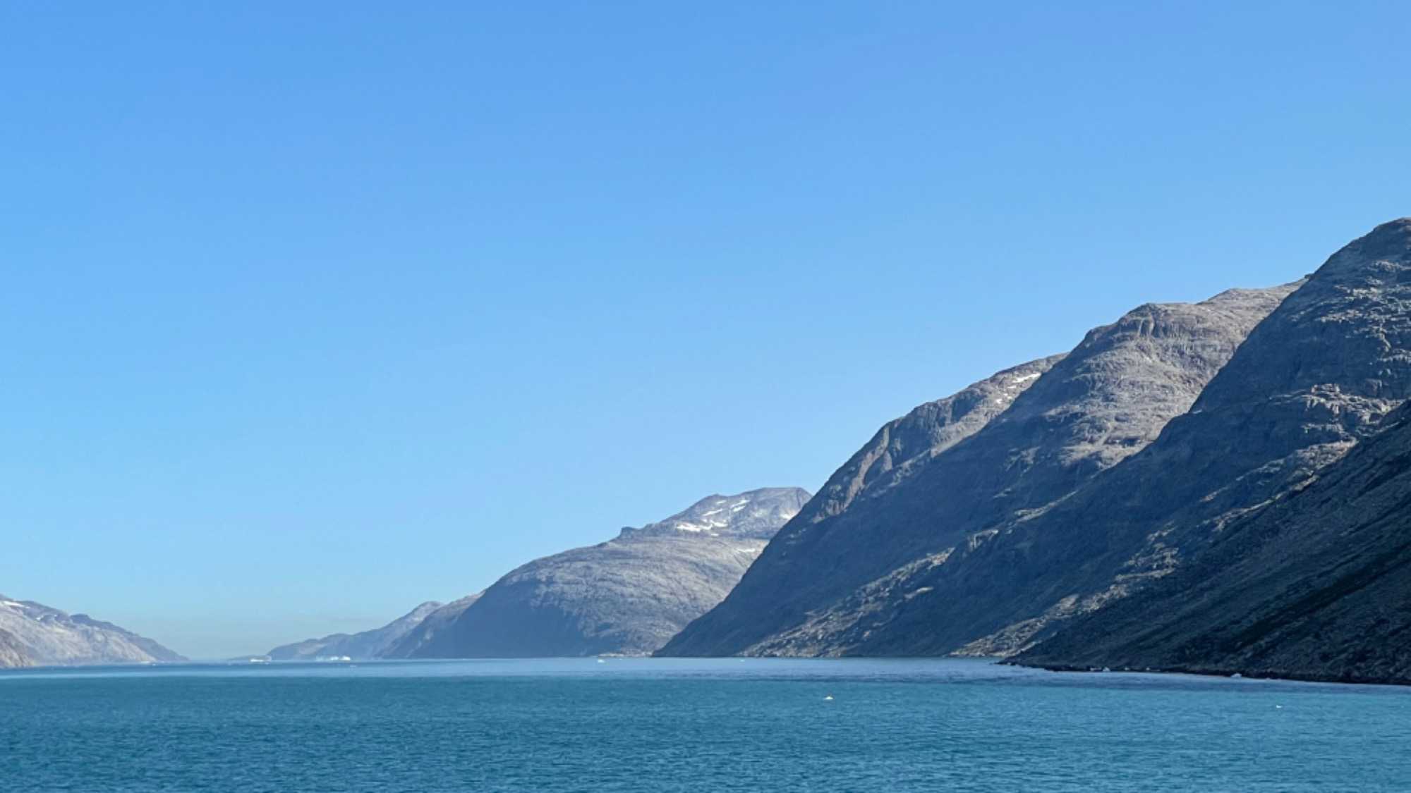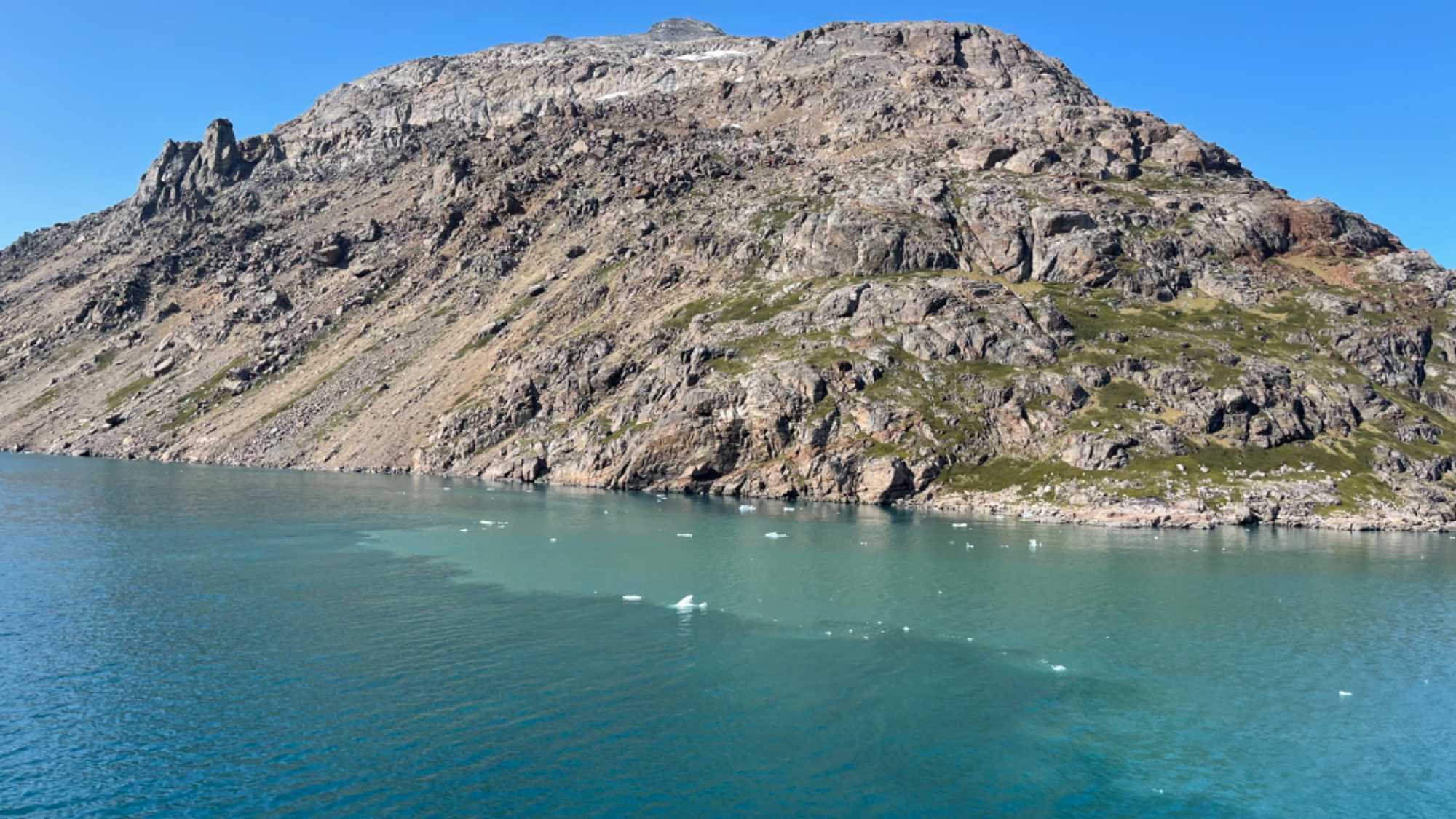 Nous avons navigué tout l’avant-midi avant d’atteindre le Groenland. Au loin, nous pouvons distinguer la terre!