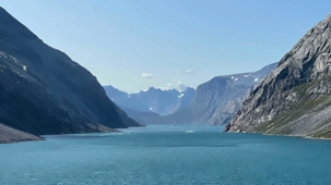 Le long système de fjords est la plupart du temps entouré par des montagnes abruptes atteignant plus 2200 m d'altitude. De nombreux glaciers se jettent dans ses eaux où ils vêlent des icebergs. Il y a souvent de forts courants de marée limitant la formation de glace.