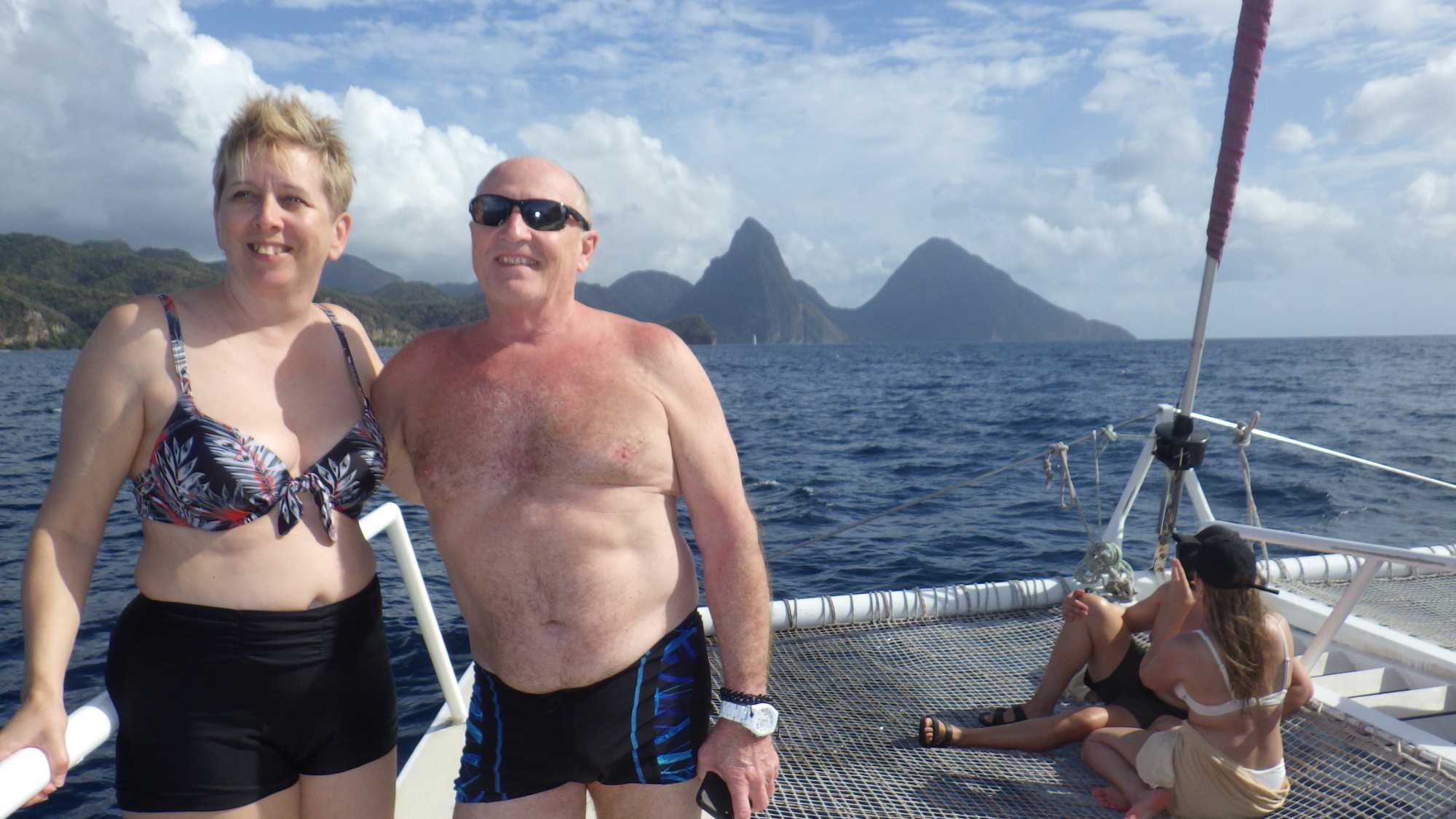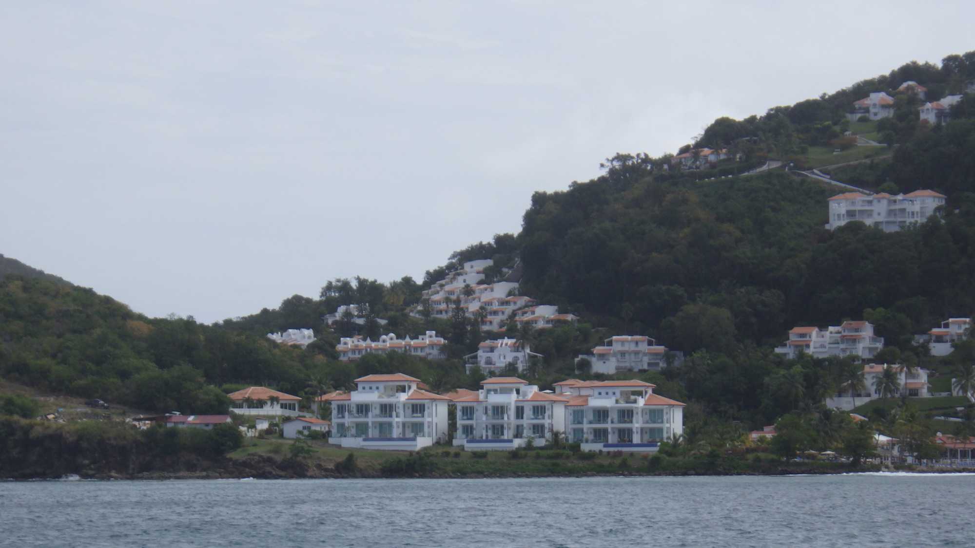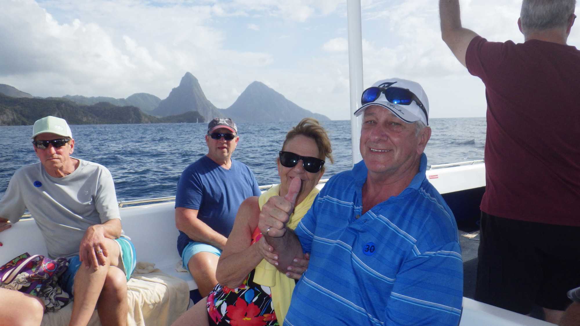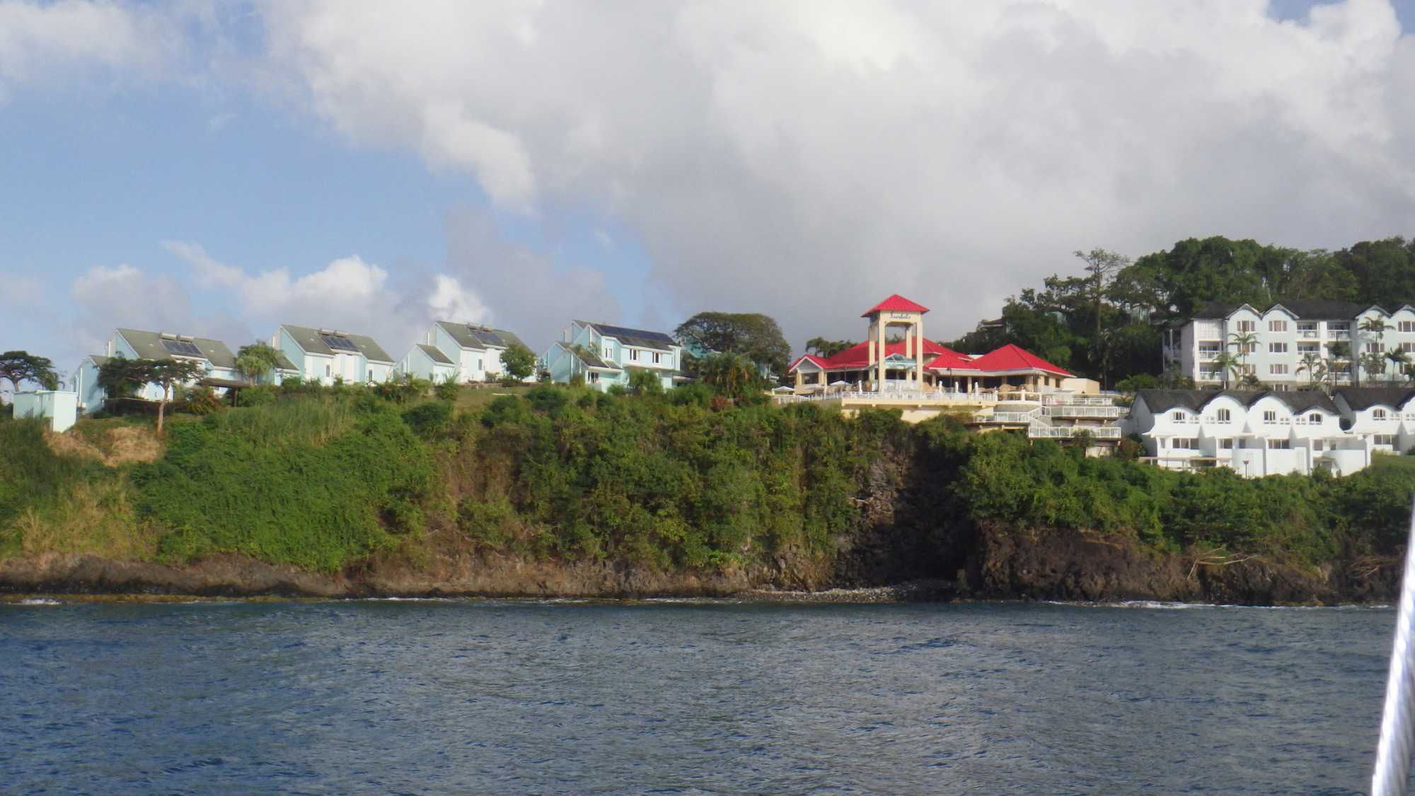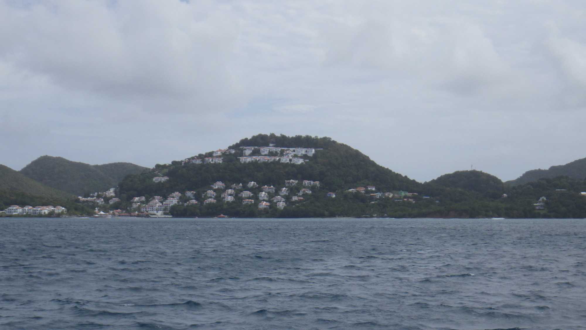 Notre arrivée à Ste-Lucie s’est effectuée à l’heure prévue. Montagneuse et ornée de végétation de toutes sortes, c’est un magnifique décor pour nos yeux. Cette île s'étend sur 620 km2. Il n'y a aucune route au centre ou qui traverse le pays car il y a beaucoup trop de montagnes. J’ai toujours visité cette île par autobus sur les longues routes sinueuses mais cette fois-ci c'était par catamaran, en plus nous avons eu du temps de baignade en bonus.