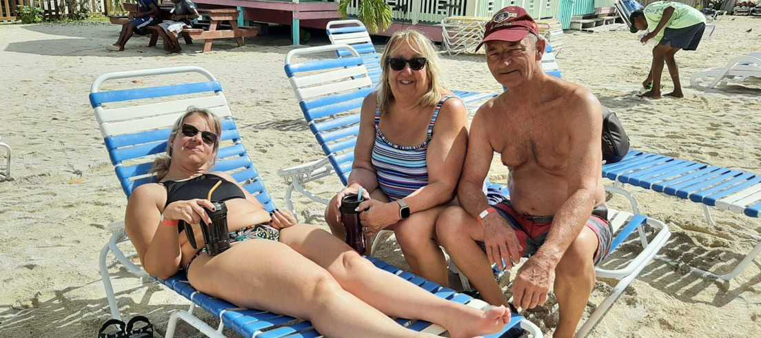 Notre dernier arrêt était l'une des plages de sable blanc immaculé d'Antigua. Nous avions les chaises incluses sur place ainsi qu’un petit rhum-punch qui nous a été servi sur la terrasse. Nous pouvions nous promener, nous baigner et nous détendre lentement avec le bruit des vagues.