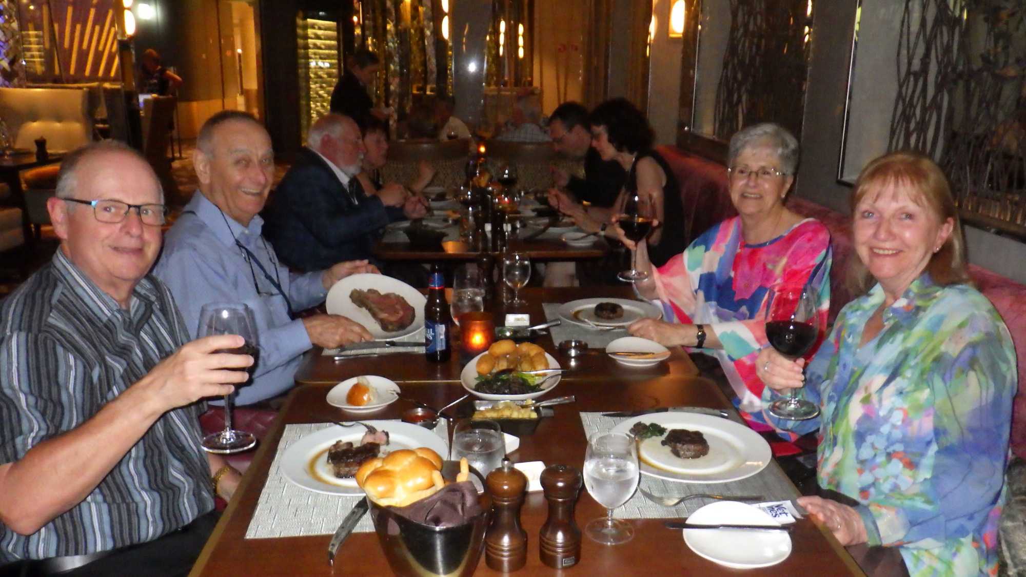 Pour le souper ce soir, Voyage Louise Drouin invitait tous ses voyageurs à un restaurant de spécialité. Quelle belle attention de la part de Louise Drouin! Nous sommes tous allés au Fine Cut Steakhouse. Quel délice! Autant le vin que les mets présentés furent excellents. Nous avons passé un excellent moment à partager entre nous. Un grand merci à Louise Drouin de la part de tous les voyageurs. Nous avons porté un toast à toi Louise, bien entendu! Merci ! Merci ! Merci !